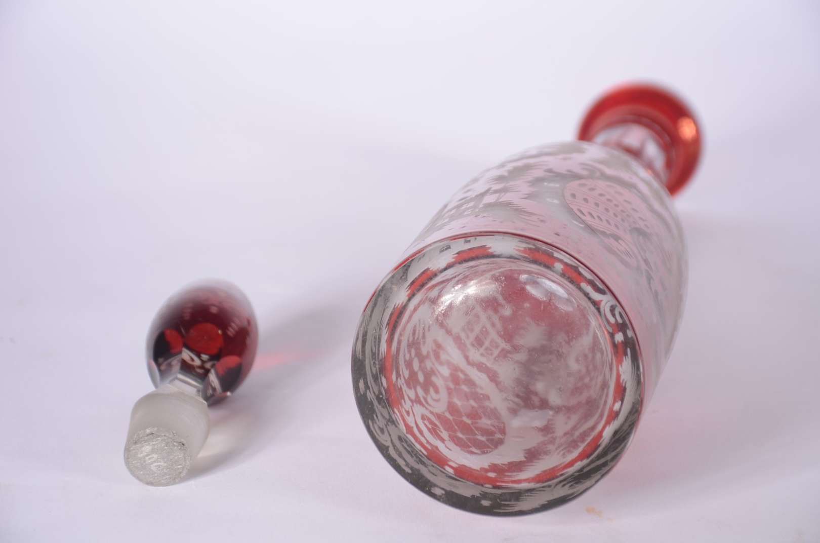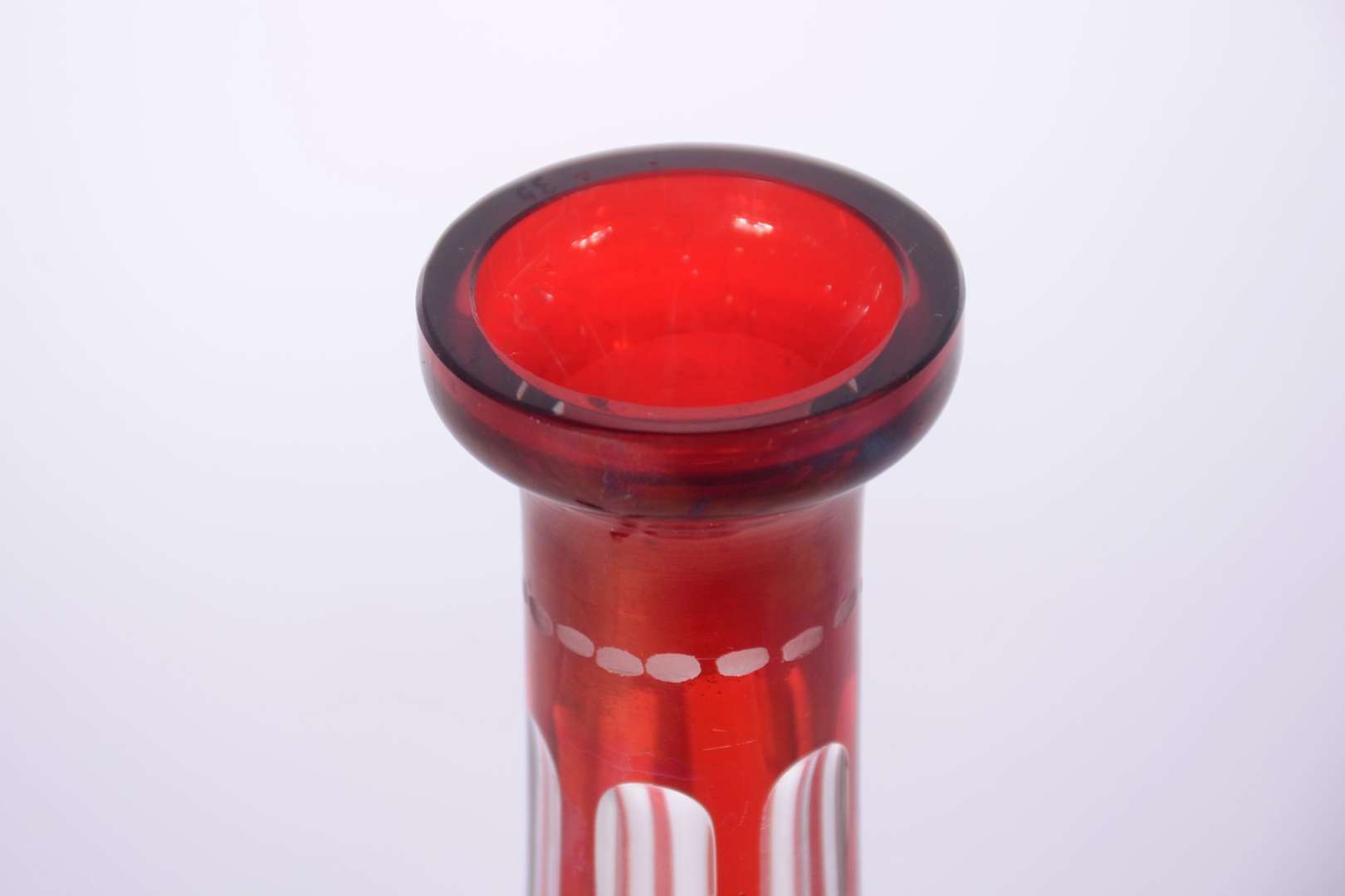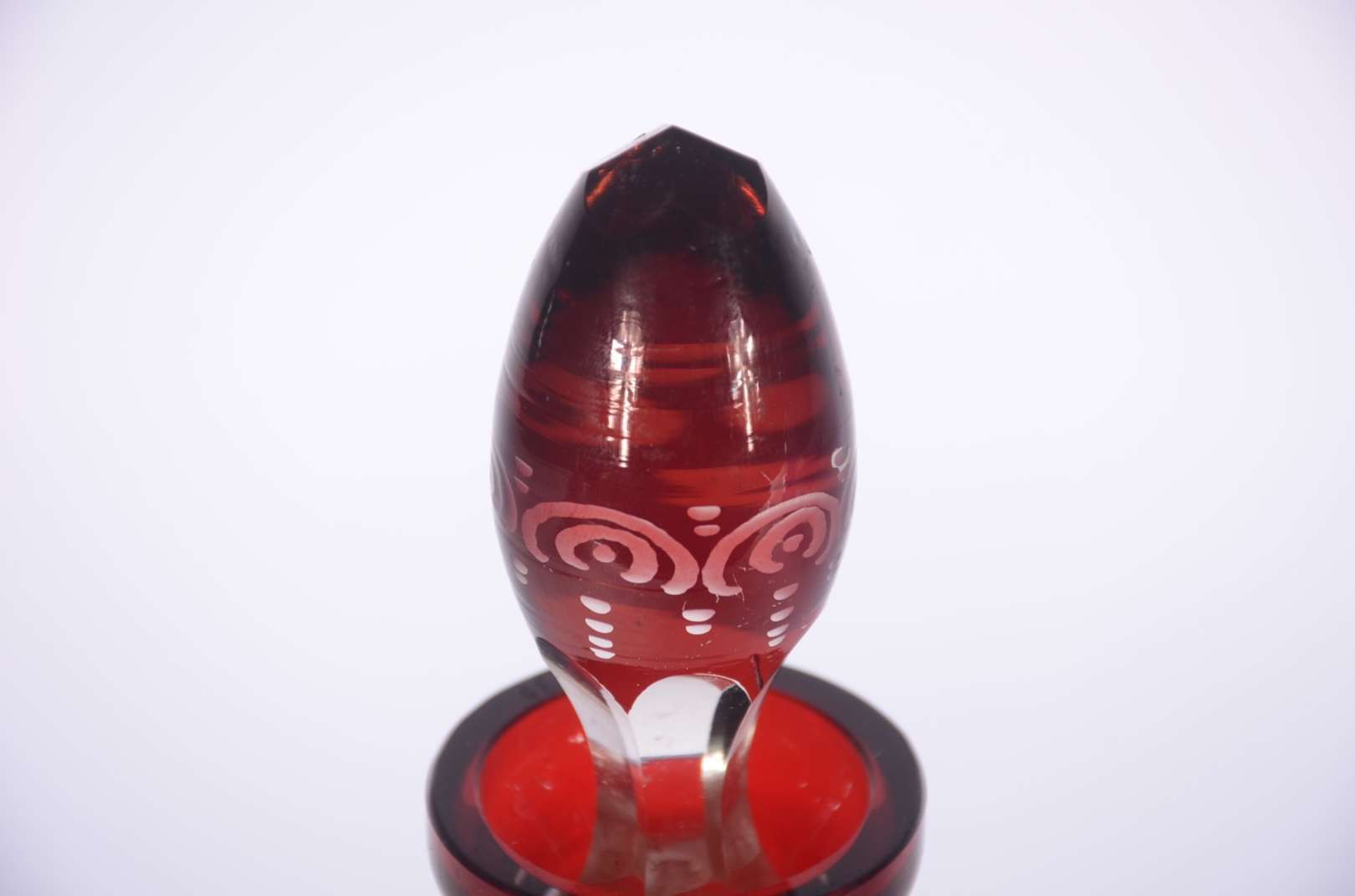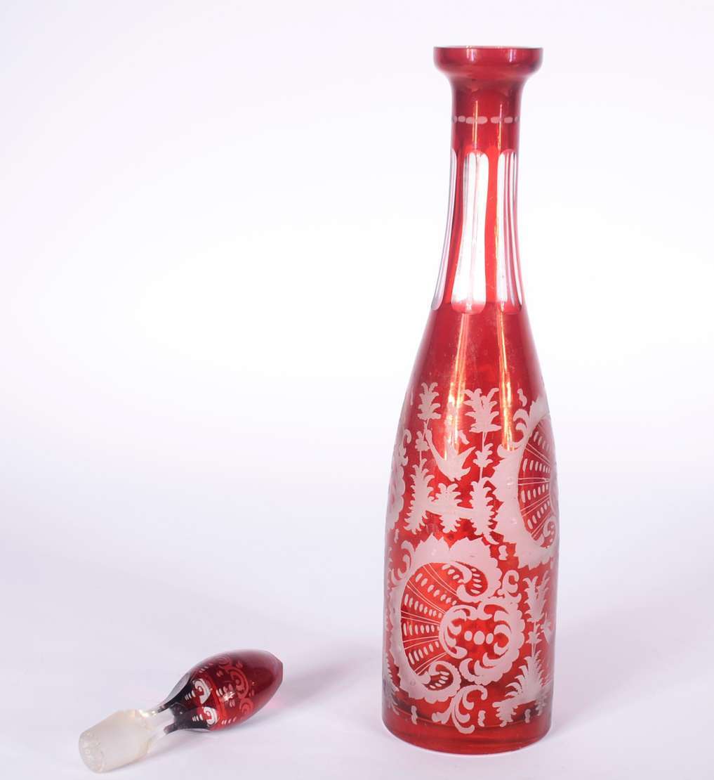 Conjunto com jarra de cristal facetada e 5 cálices para vinho de cristal, assinados Moser. (A jarra não tem marca).