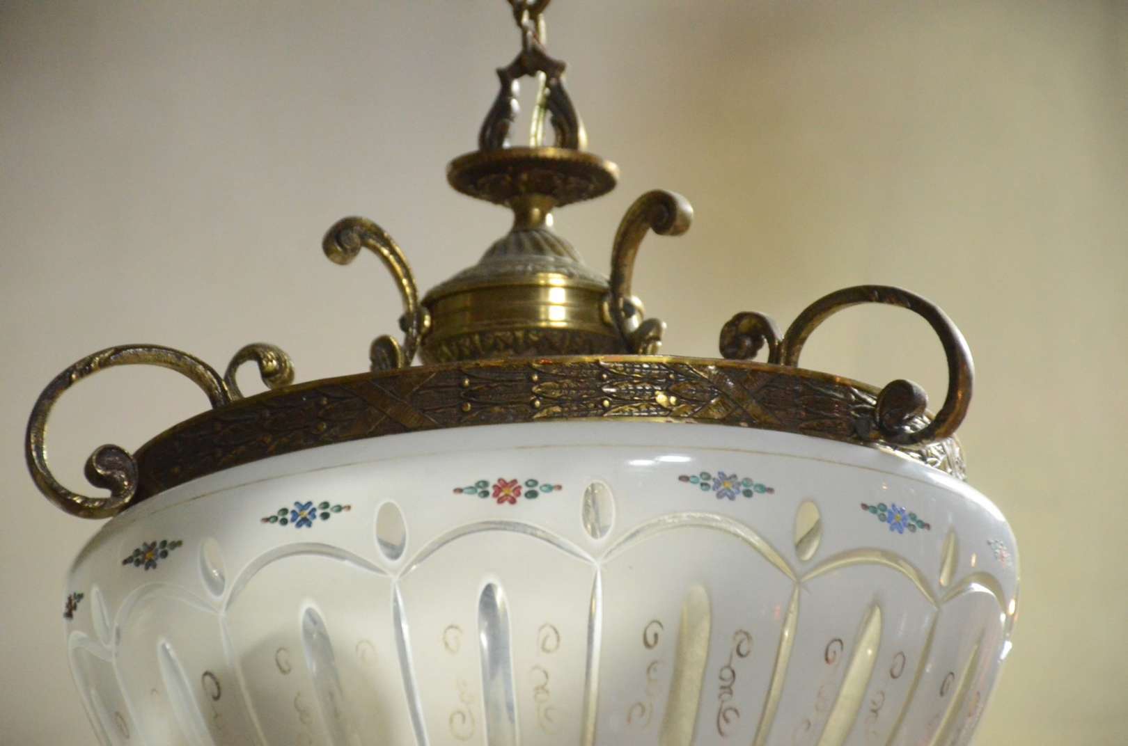 Par de abatjoures feitio "bola" de cristal overlay branco, guarnição de metal. Acompanham cúpulas na cor bege, uma ra...