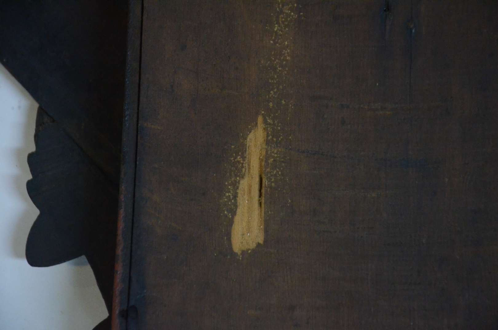 Espelho de cristal bisotado com moldura de madeira entalhada.