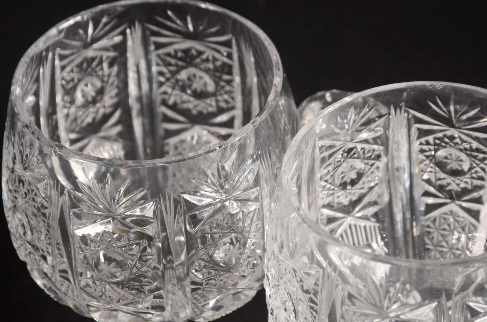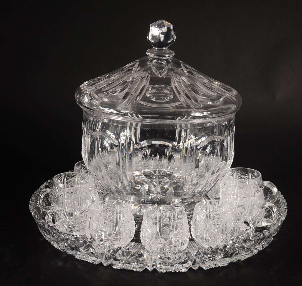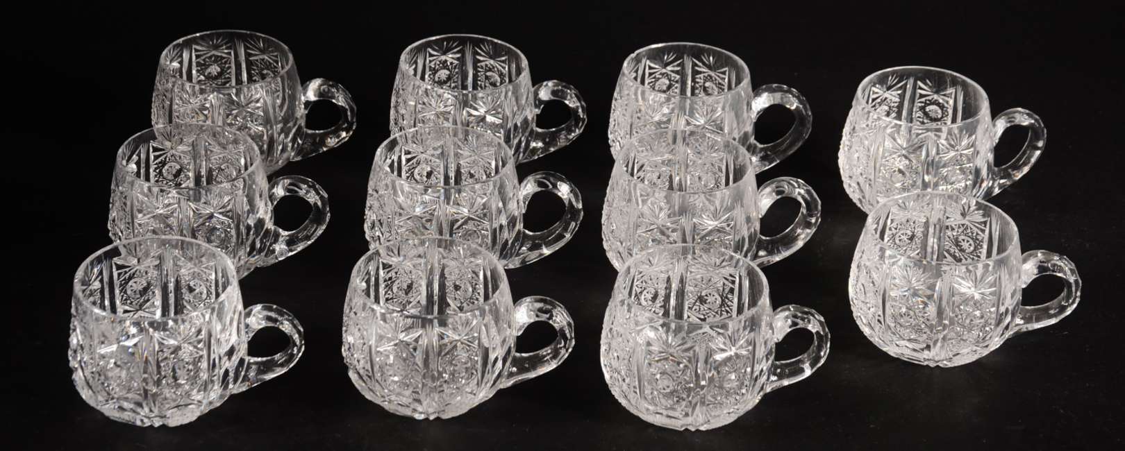 Diversas peças, sendo: Seis taças para cognac de cristal lapidado e 6 bowls ingleses, assinados Webb.