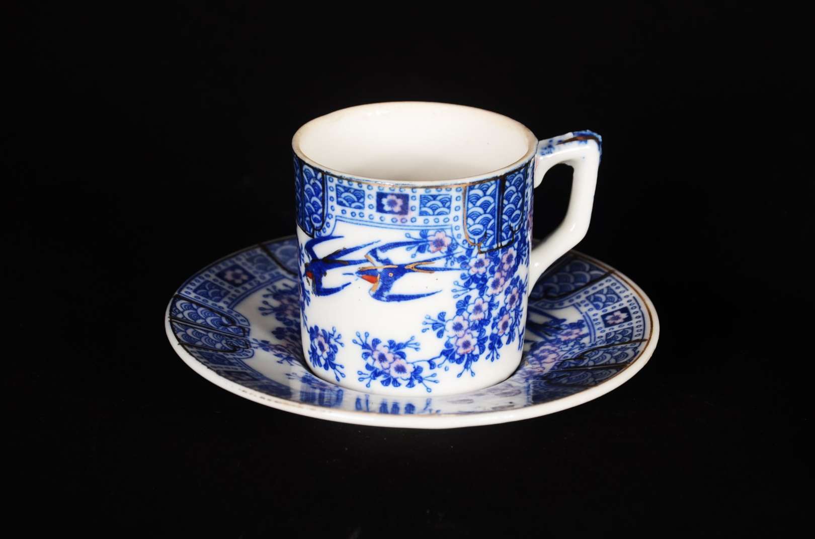 Serviço de chá e café de porcelana tcheca, decoração floral em policromia, composto de: 6 xícaras de chá com pires, 6...