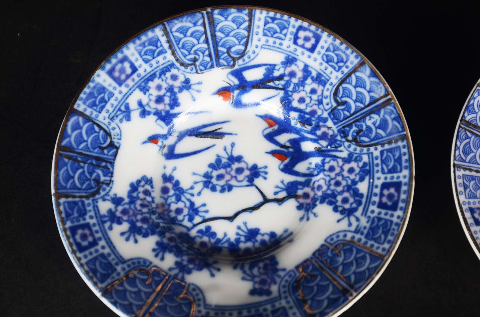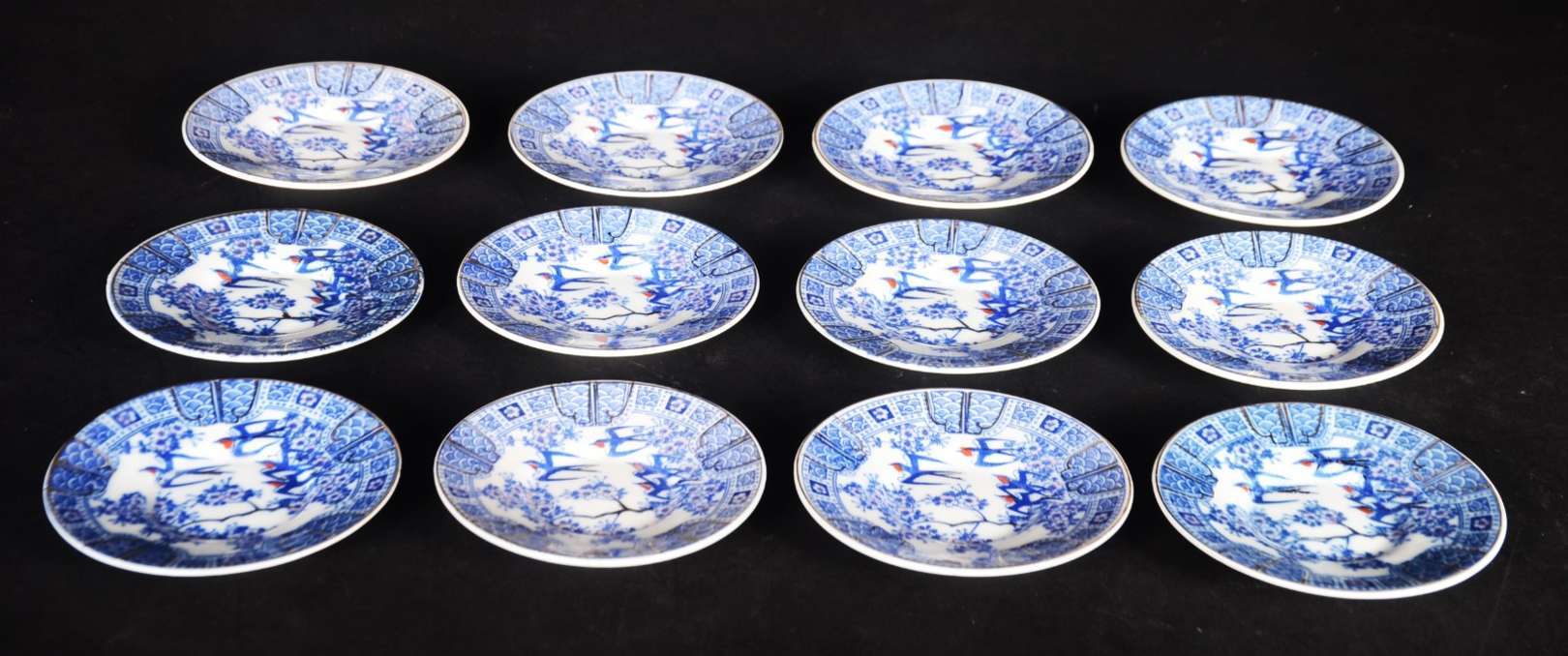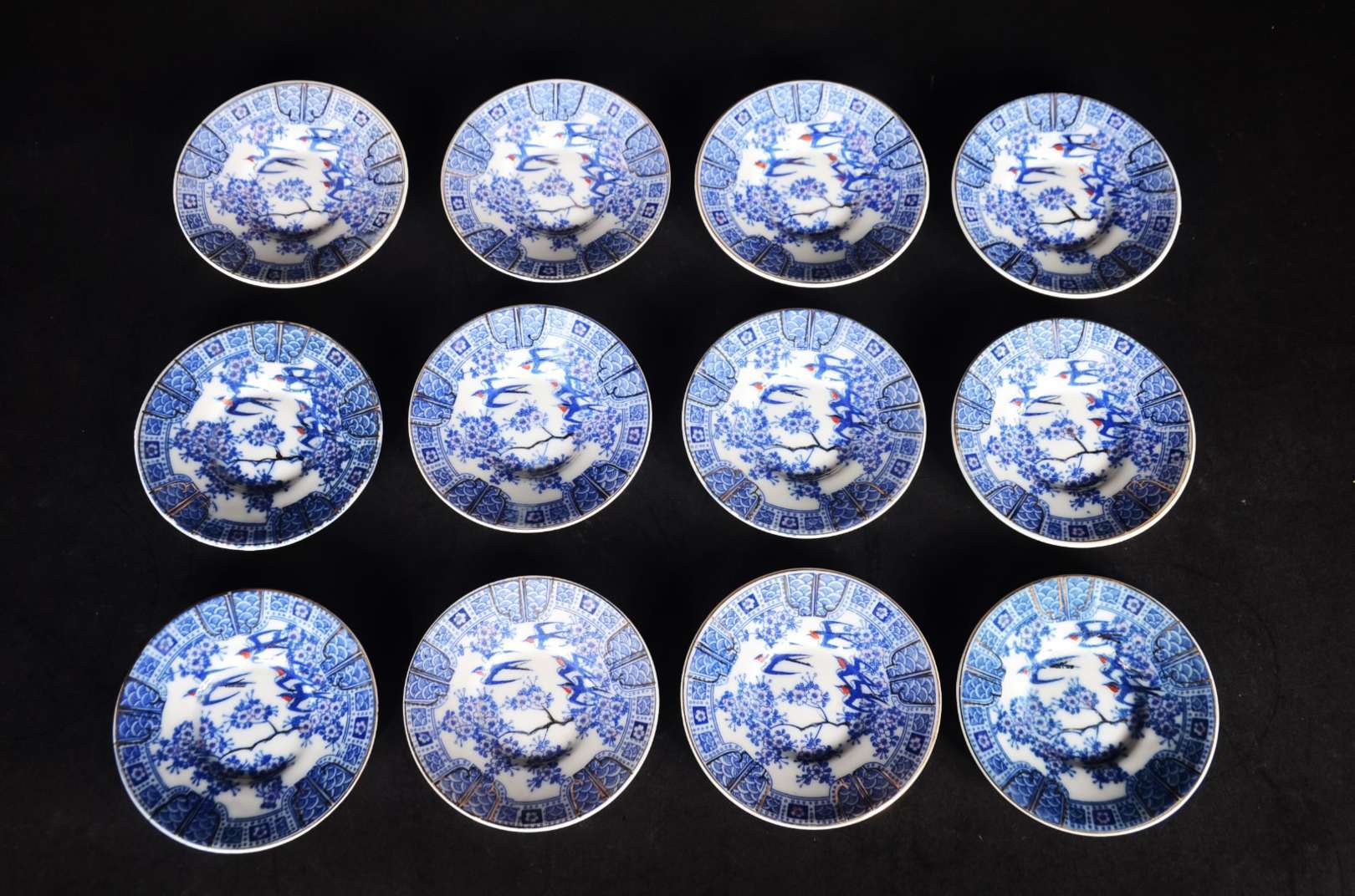Serviço de jantar de porcelana inglesa Wedgwood, borda com guirlandas em tons de azul, composto de: 10 pratos rasos,...
