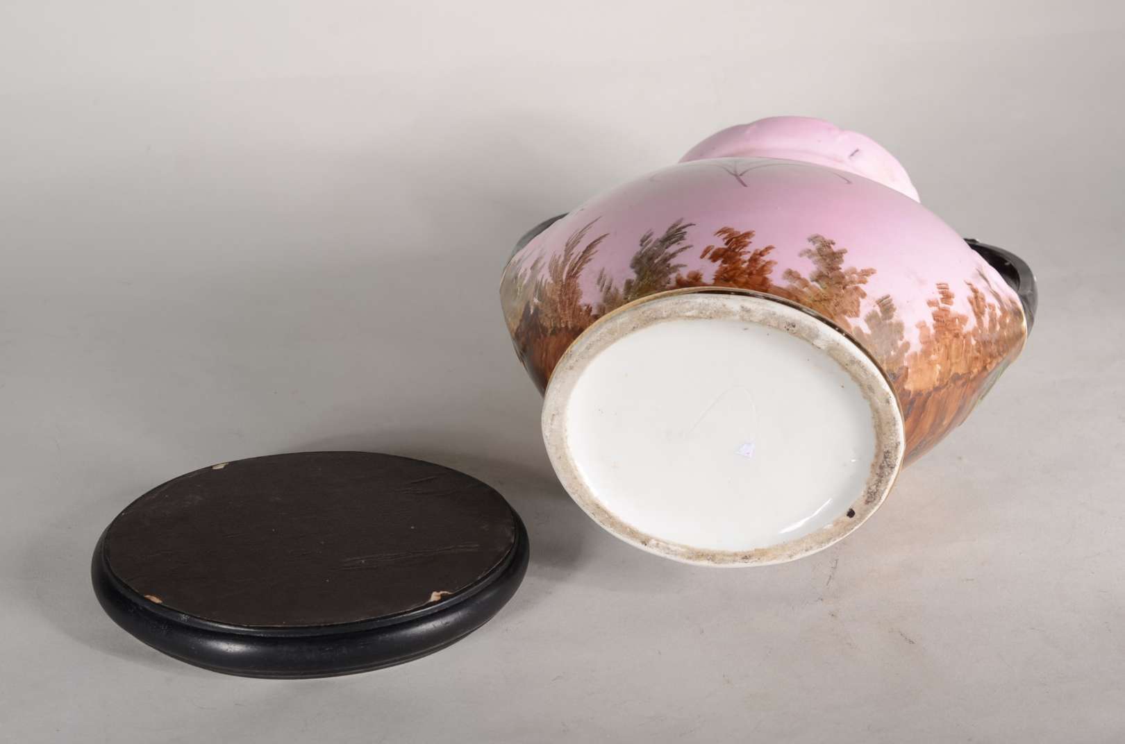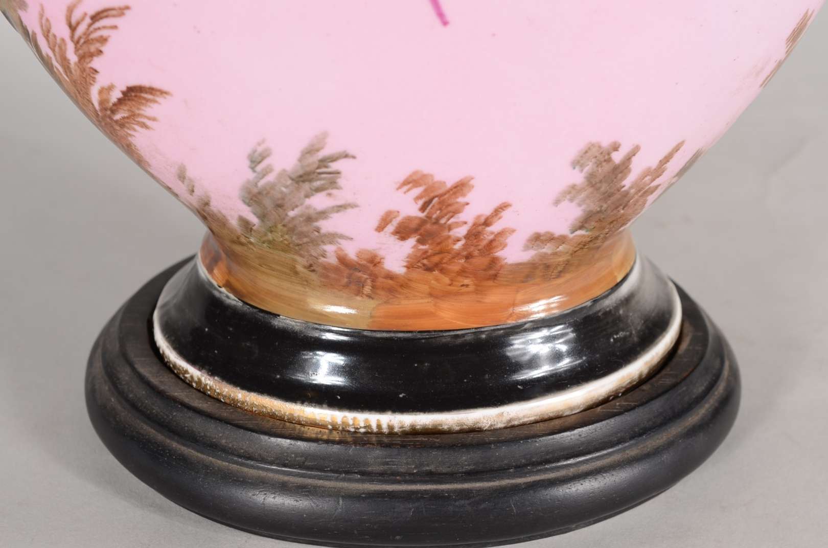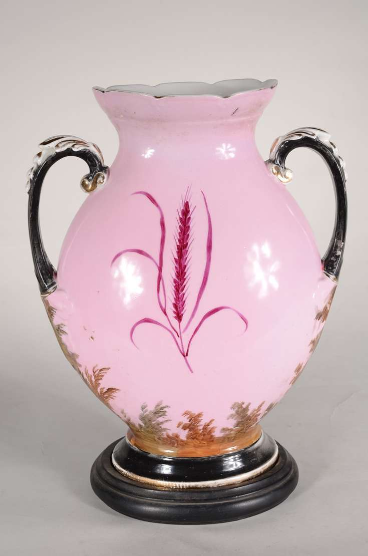 Par de vasos de porcelana oriental decorados com flores, folhas e gueixas em policromia. Um deles com o bocal quebrad...