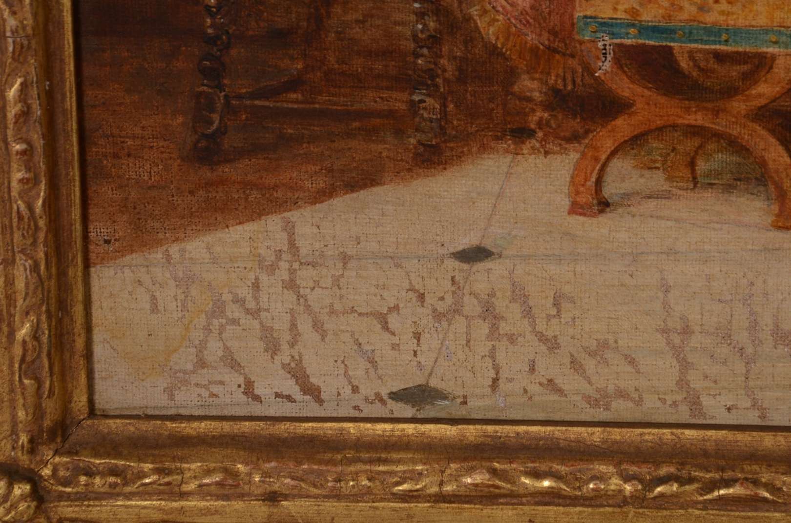 Óleo sobre tela. Pintura precisando de restauro. Assinado.