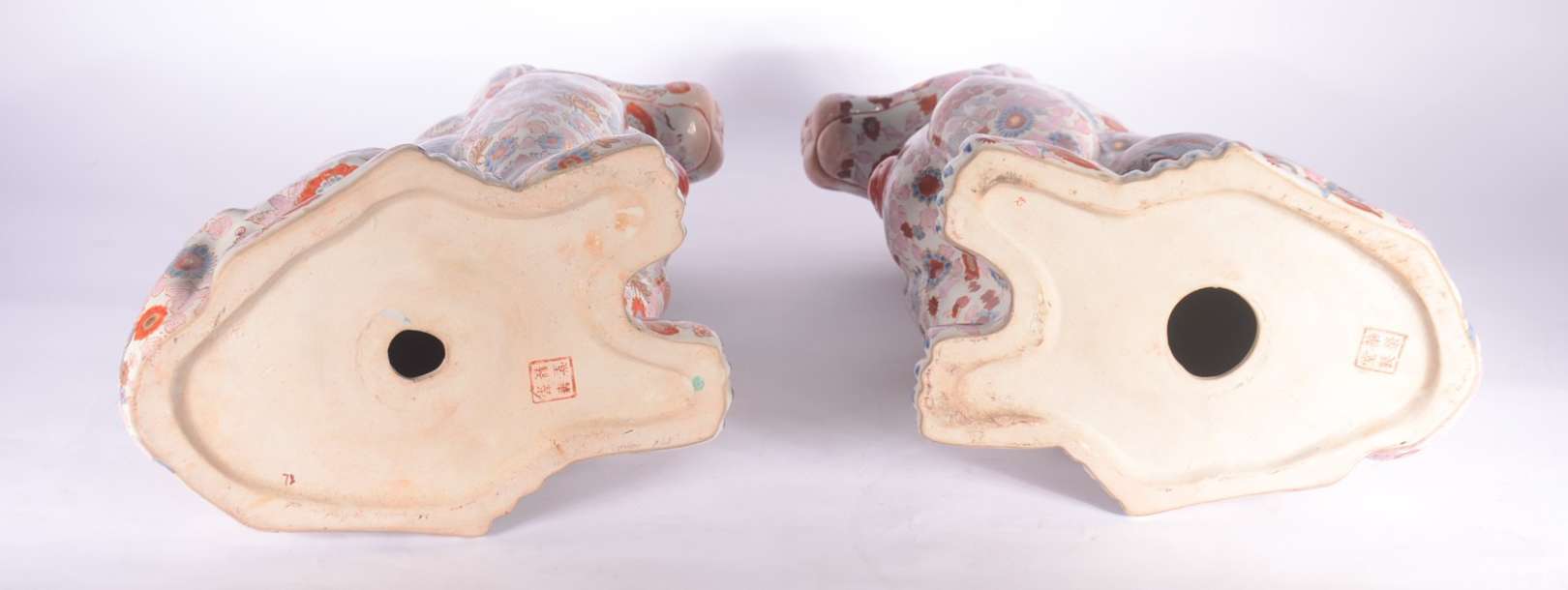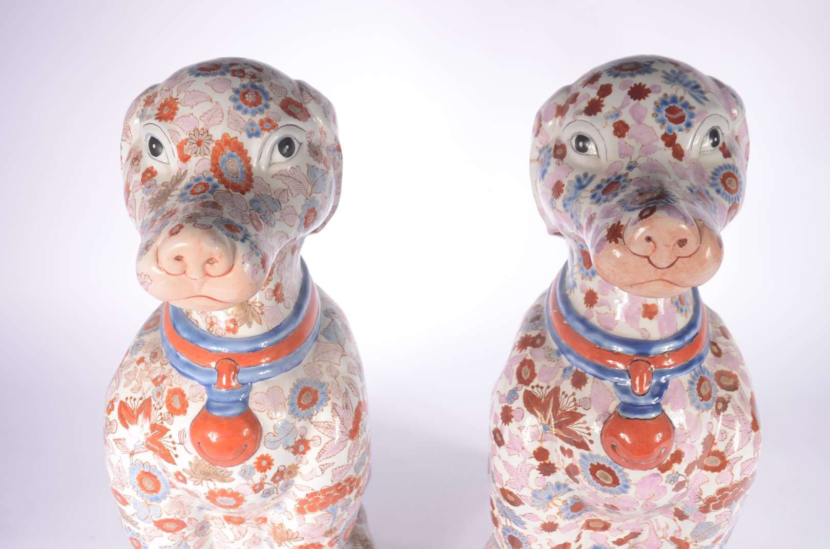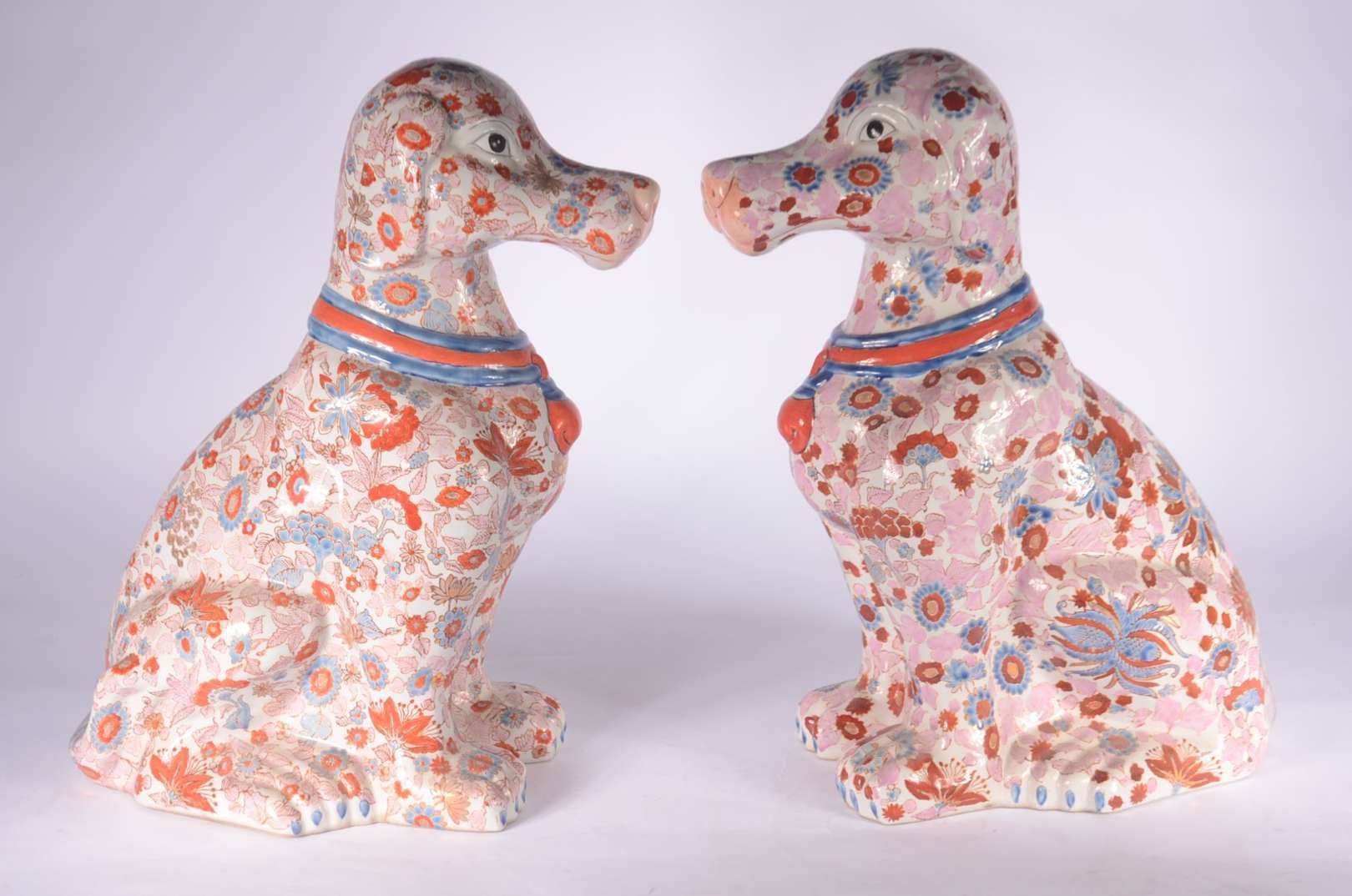 Duas esculturas de porcelana policromada representando casal de coelhos.