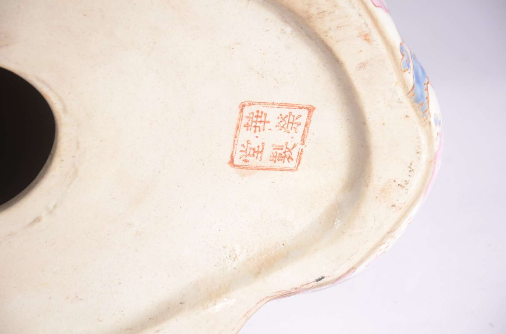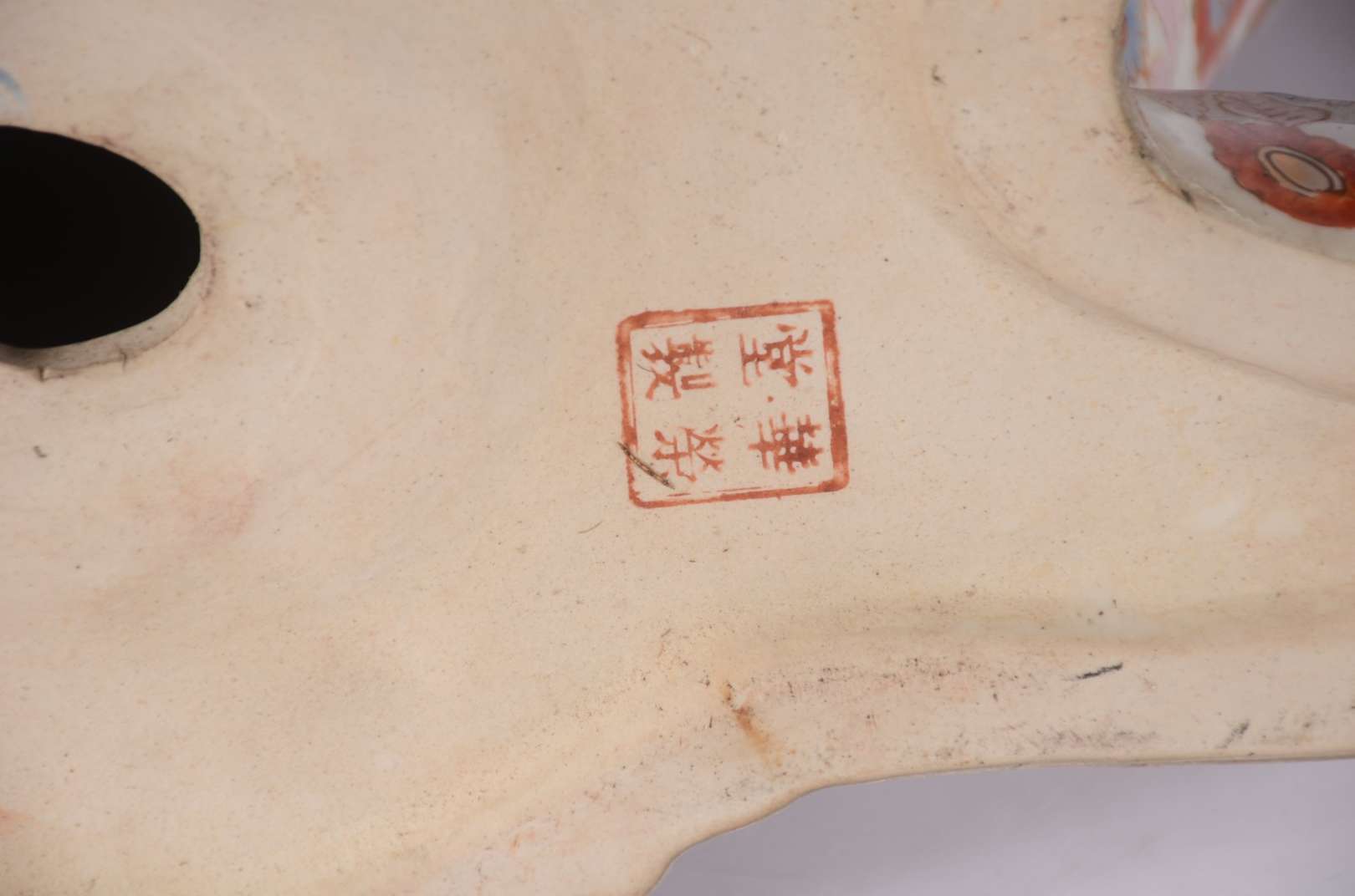 Estatueta de porcelana policromada representando Buda.