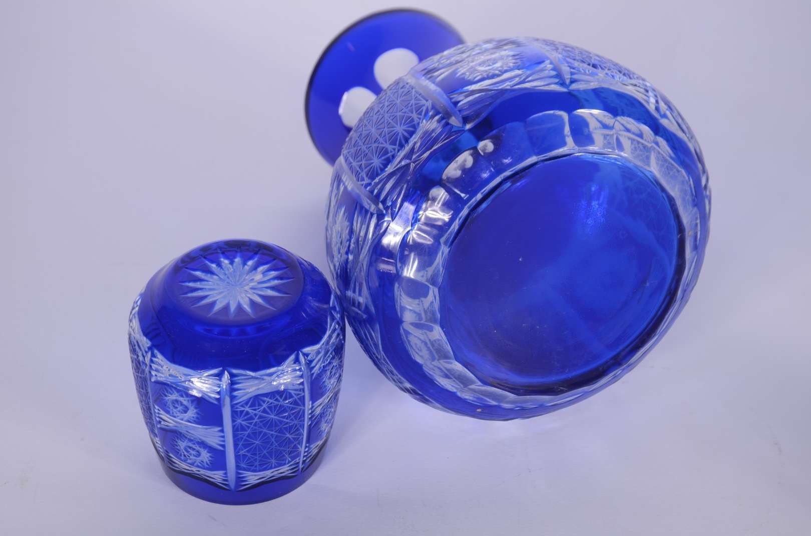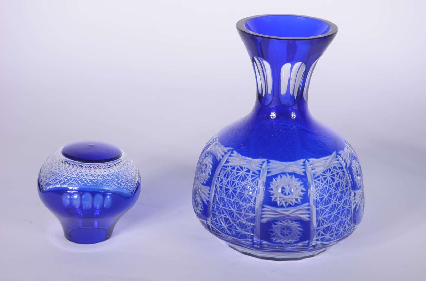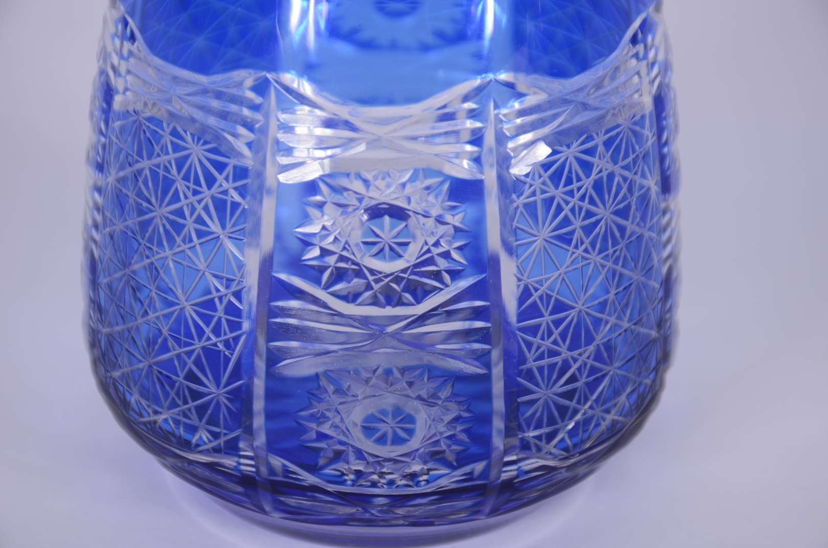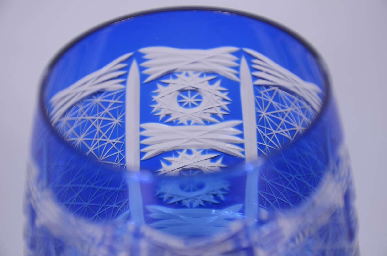 Conjunto com jarra de cristal facetada e 5 cálices para vinho de cristal, assinados Moser. (A jarra não tem marca).