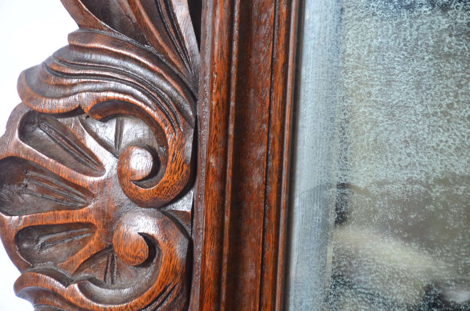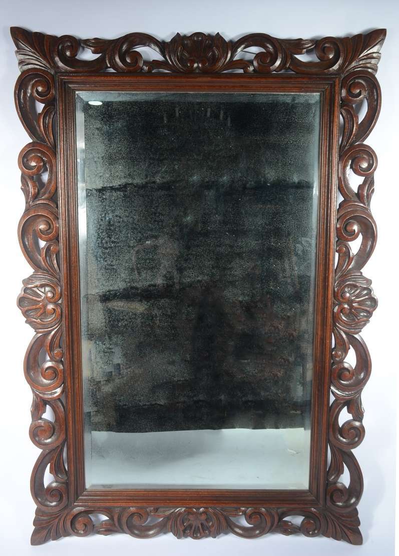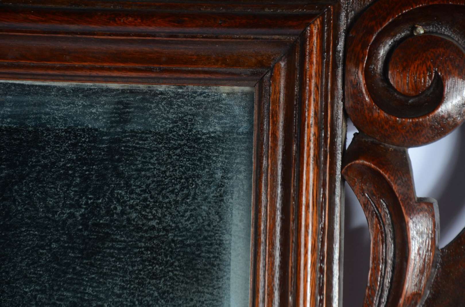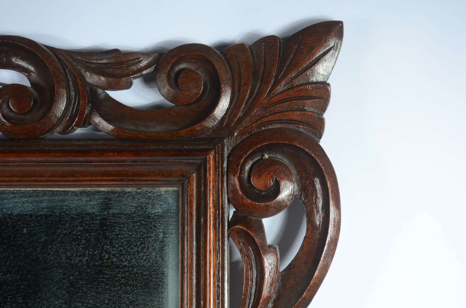 Espelho de cristal bisotado com moldura de madeira entalhada.