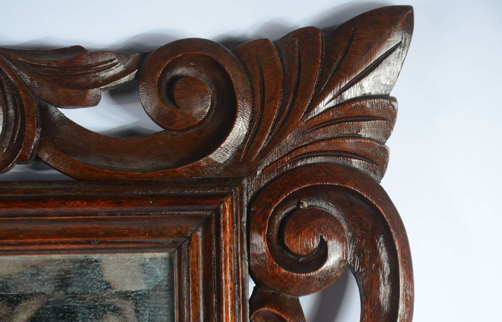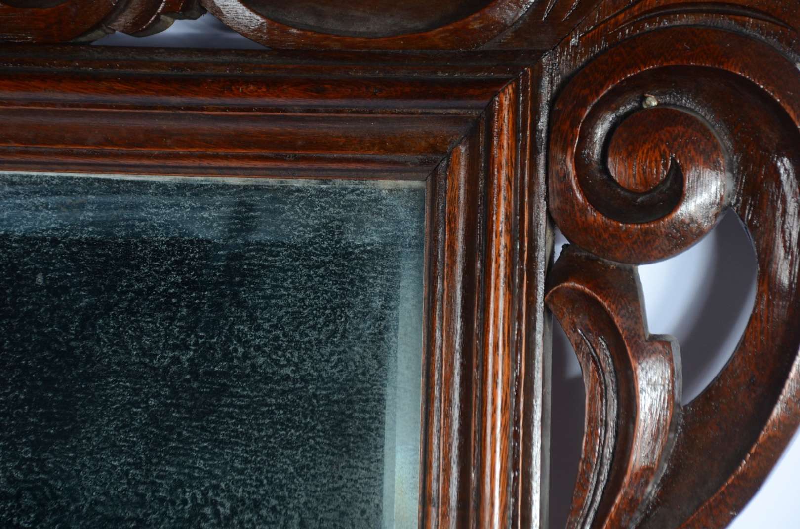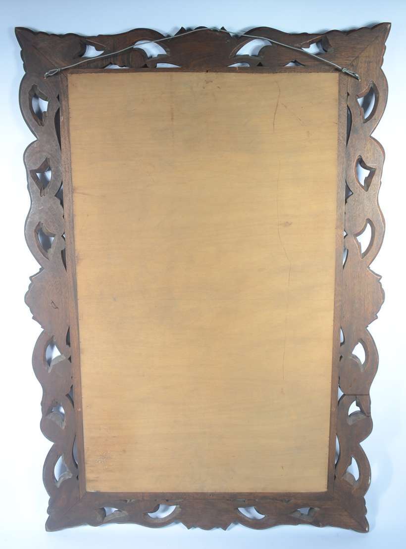 Espelho de cristal bisotado com moldura de madeira entalhada.