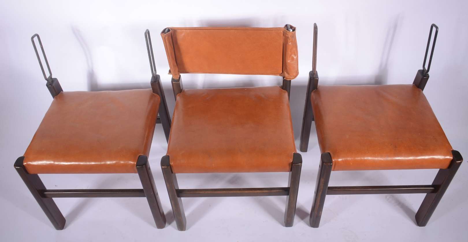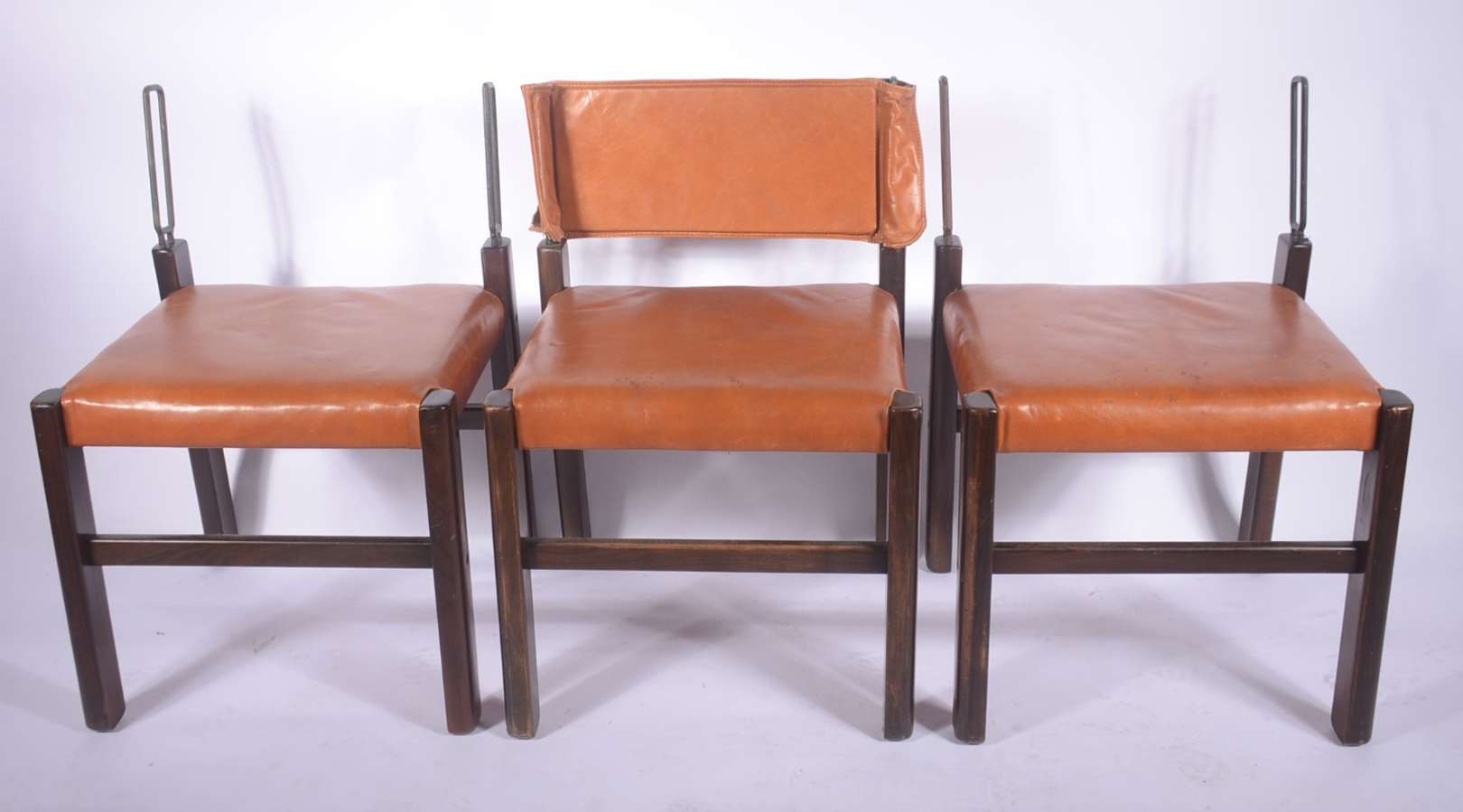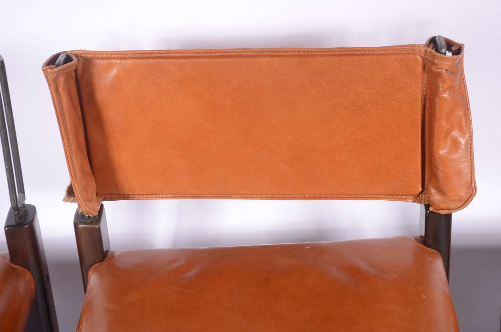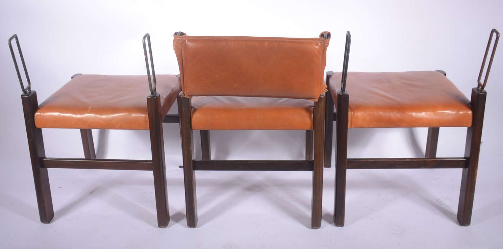 Par de banquetas de jacarandá com assentos de palhinha. Anos 60.