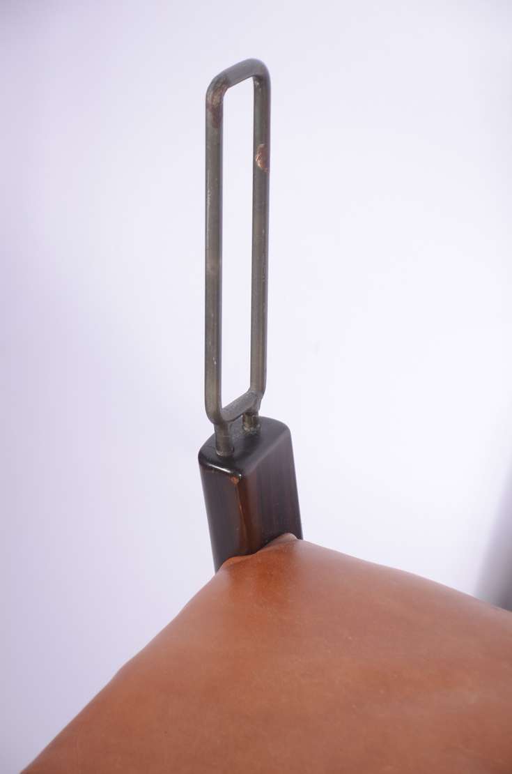 Pequena cadeira articulada de madeira nobre com assento de palhinha.