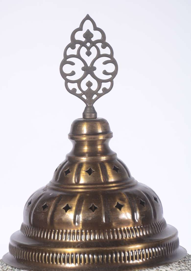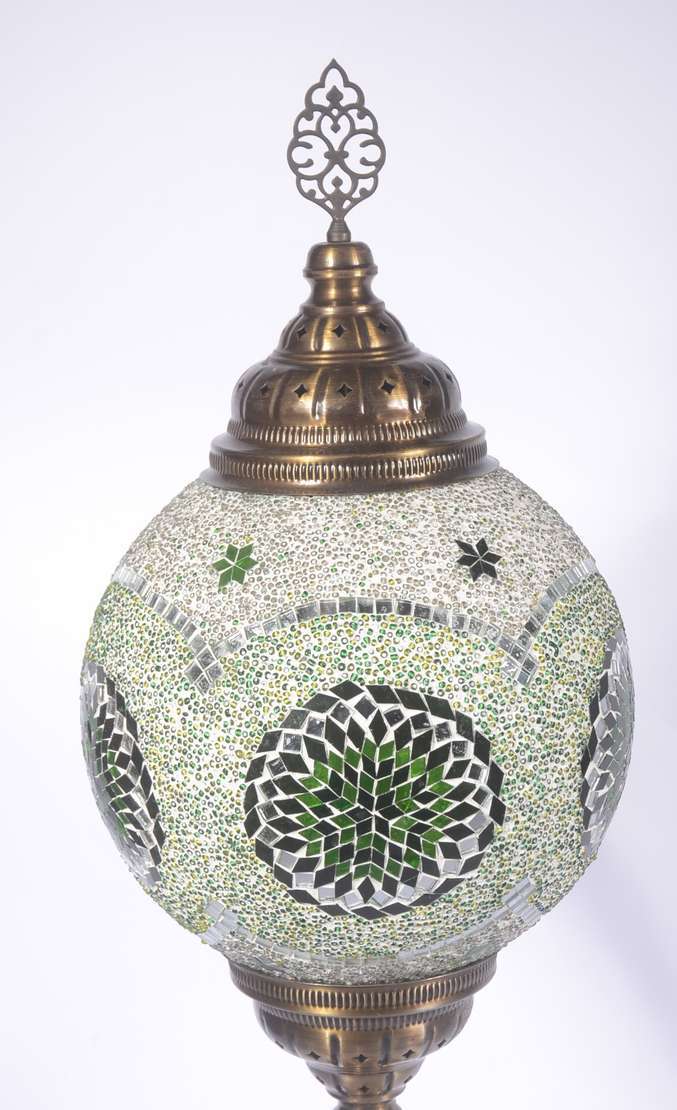 Lanterna com globo de vidro opalinado branco.
