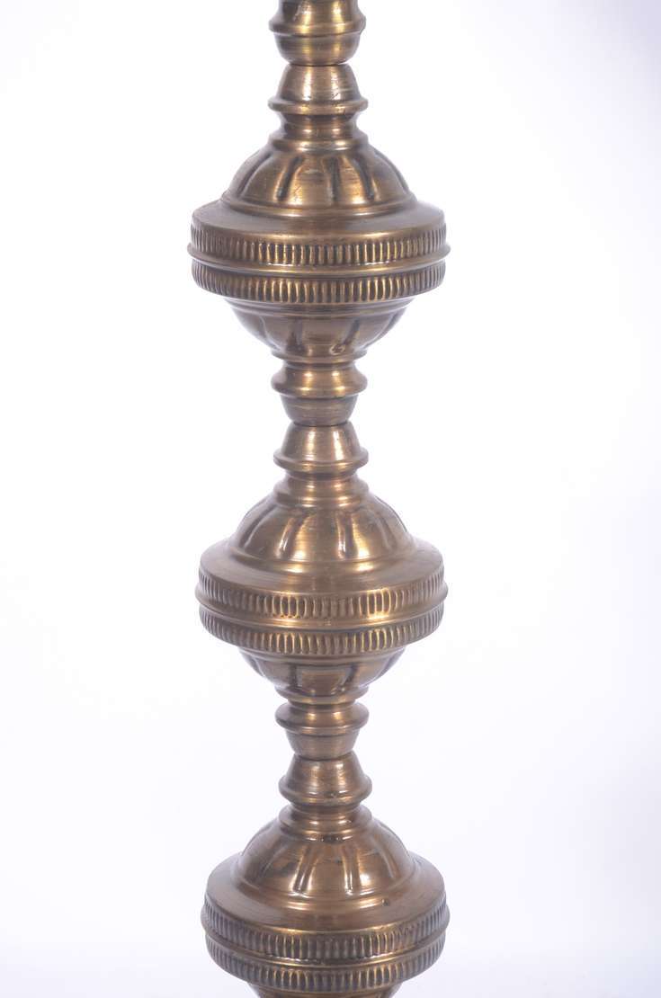 Abatjour de prata portuguesa contraste Javali, base em forma de coluna com borda perolada, cúpula cinzelada com guirl...