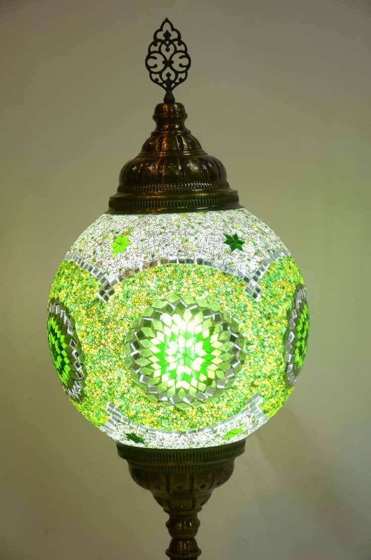 Abatjour de cristal overlay branco, verde e vermelho com realces dourados.