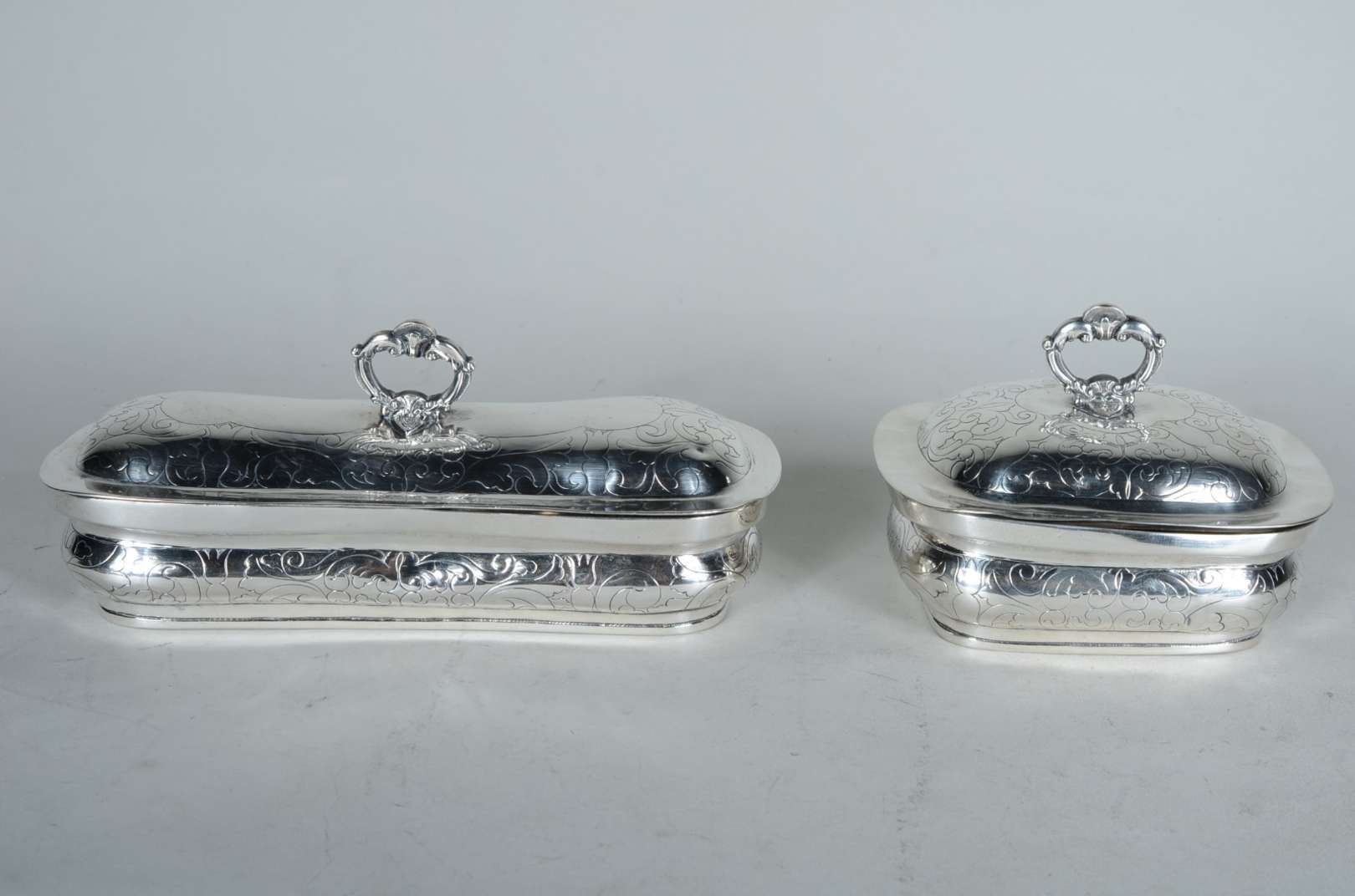 Conjunto com 9 peças acessórias para toilette de prata contrastada. Modelos diversos. Desgastes.