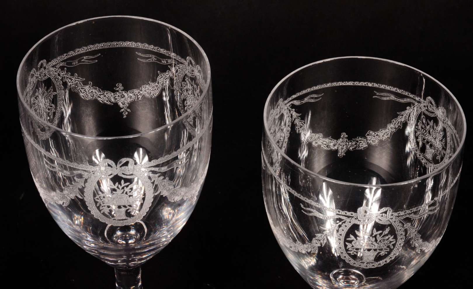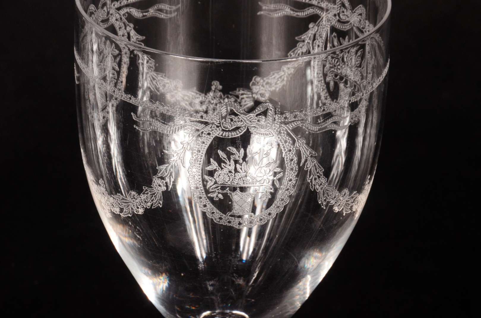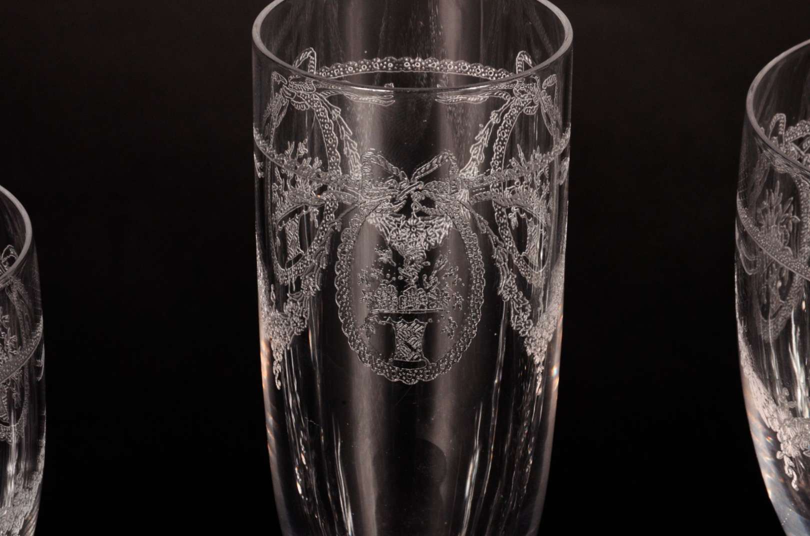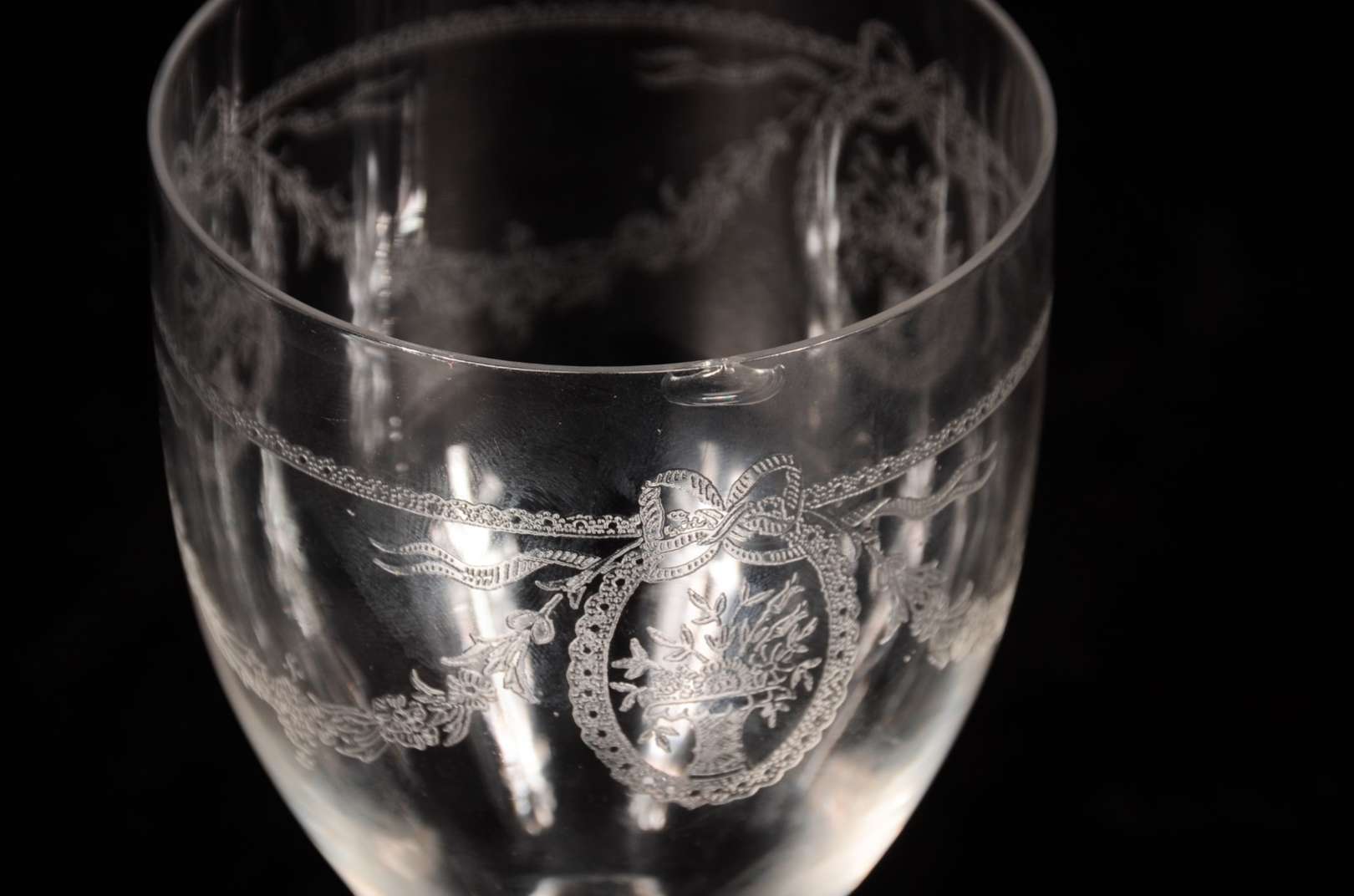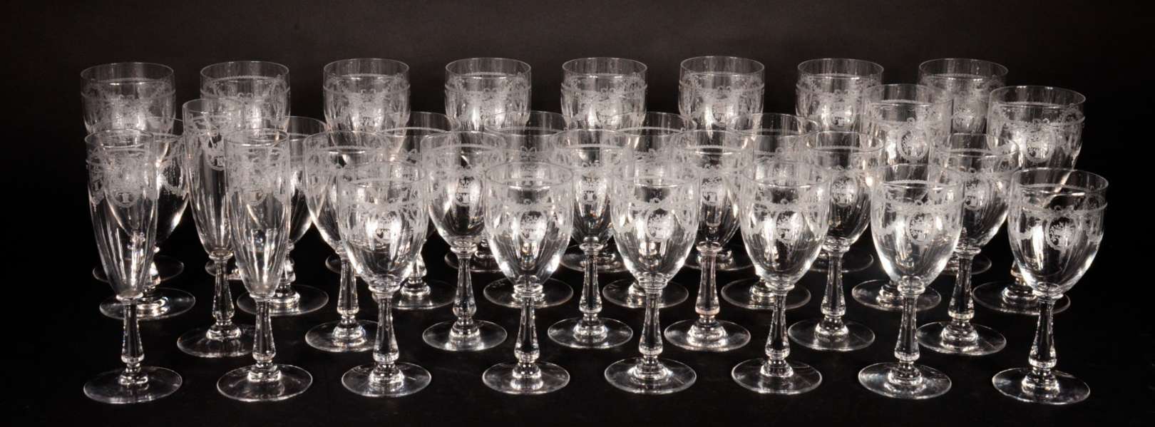Serviço de cristal lapidado, composto de: 8 taças para vinho tinto, 8 para vinho branco e 8 para licor (pequenos bica...