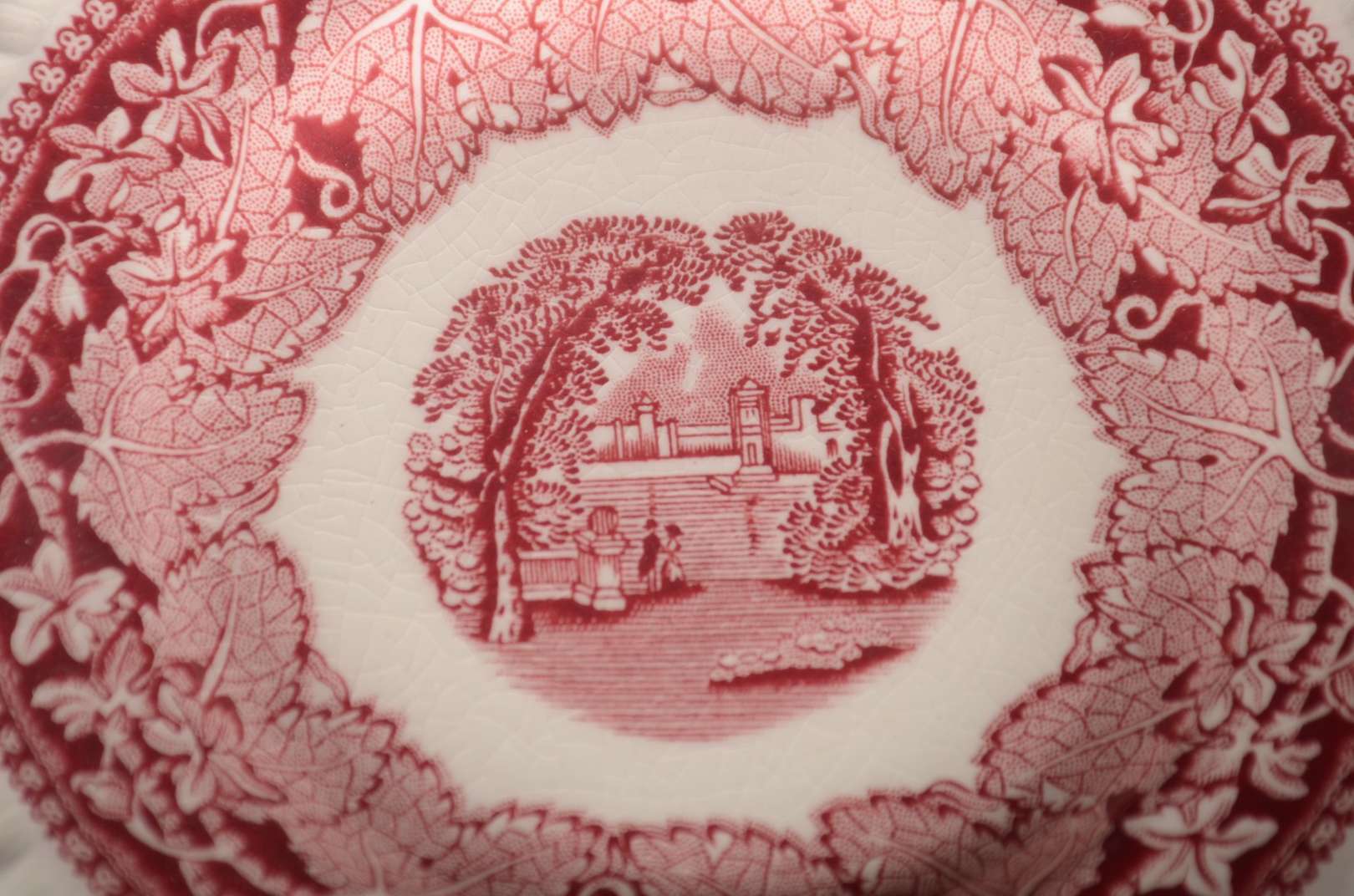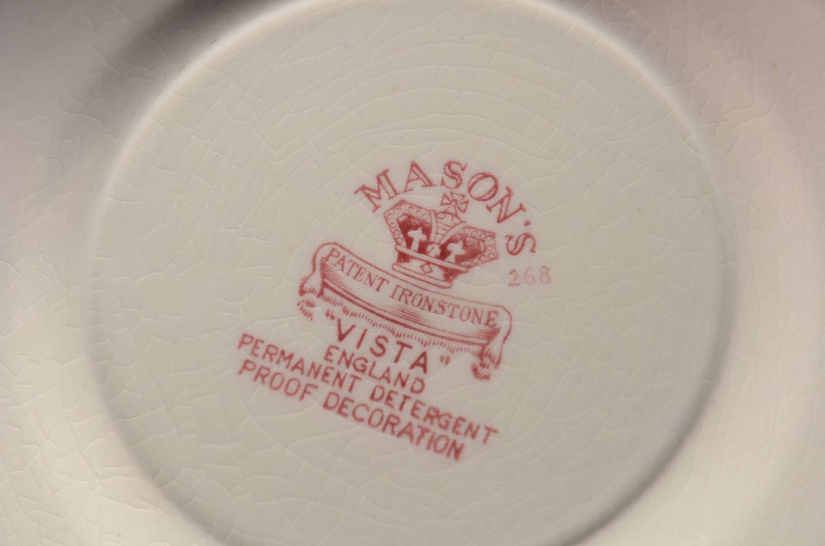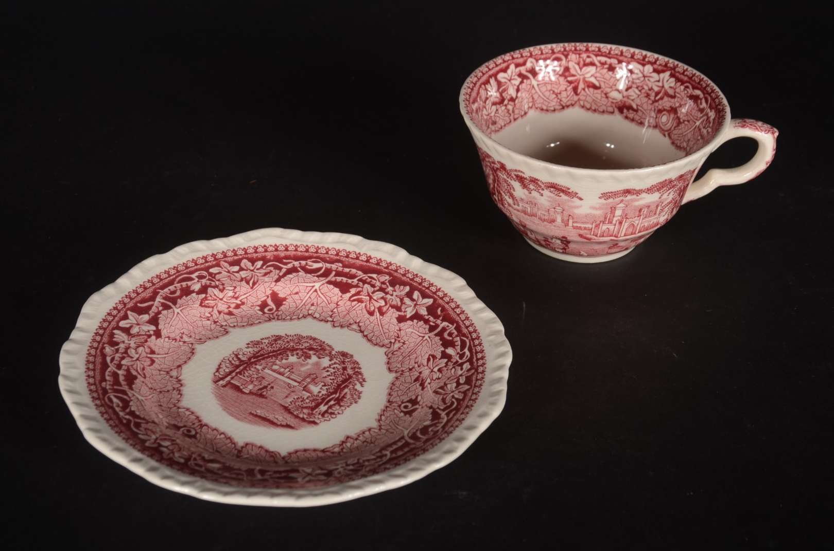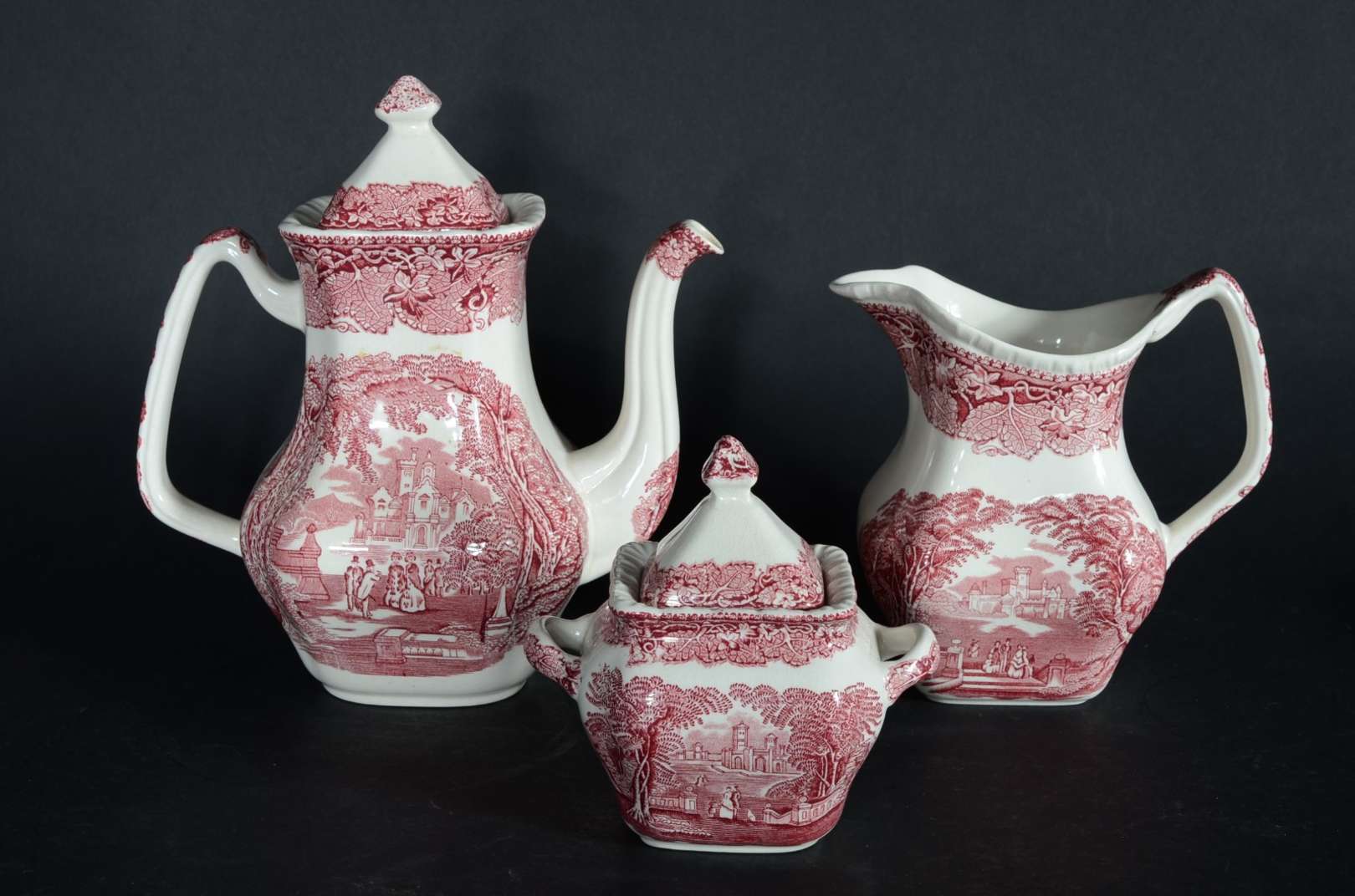 Aparelho de fainça inglesa Mason's rosa e branco para chá, composto de: 13 xícaras com pires, prato grande, 4 pratos para bolo, açucareiro e bule. Total:20 peças.
