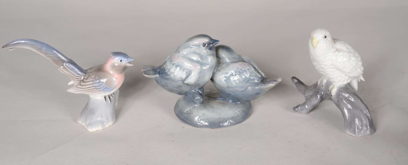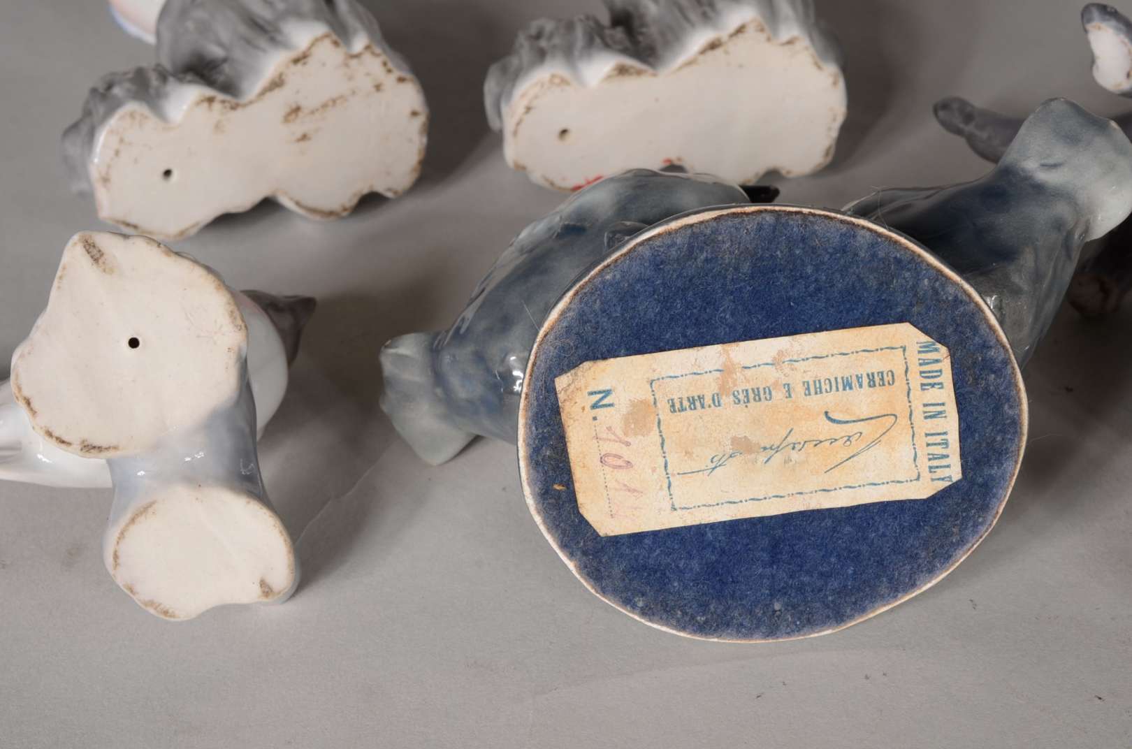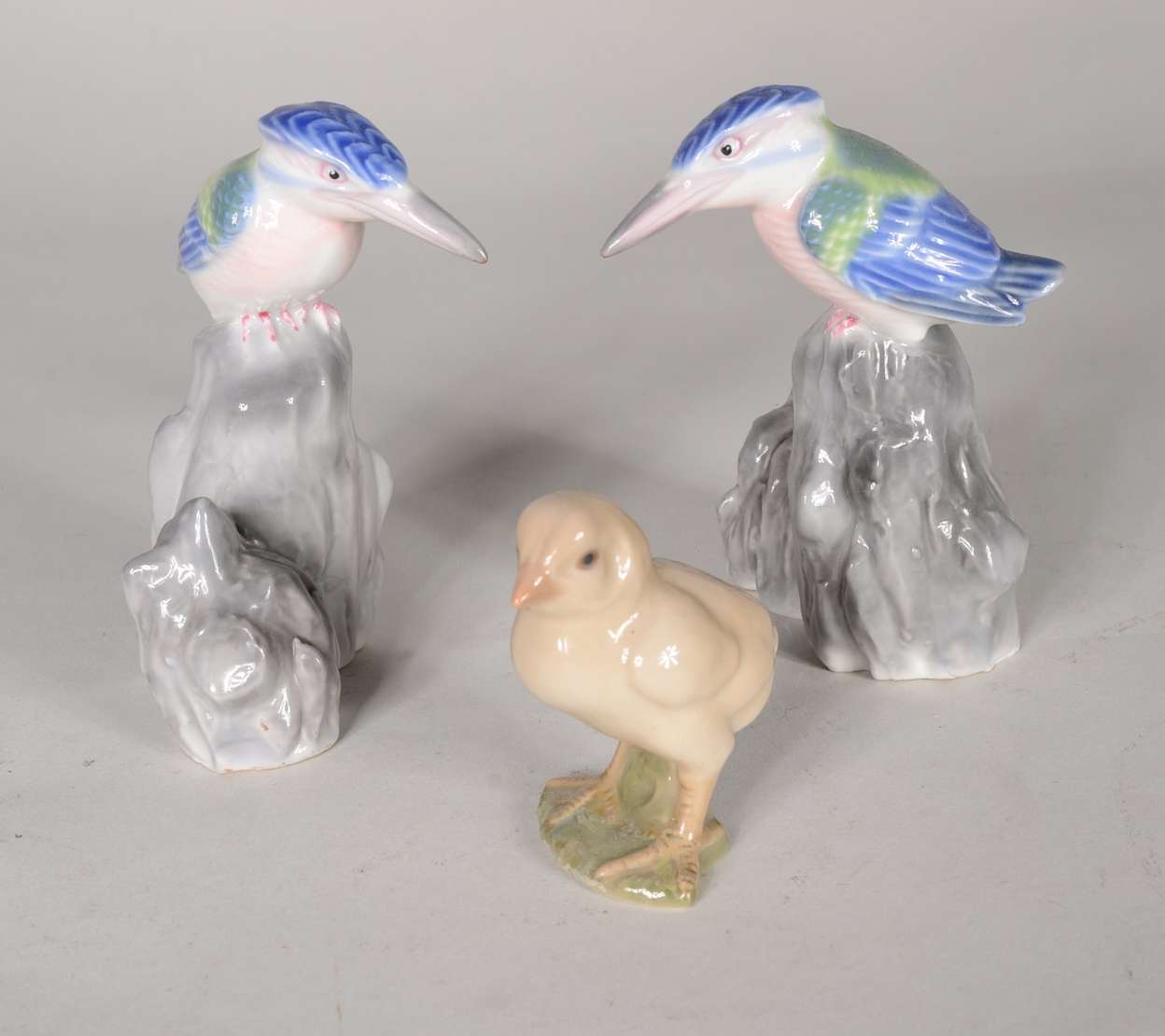 Duas esculturas de porcelana policromada representando casal de coelhos.