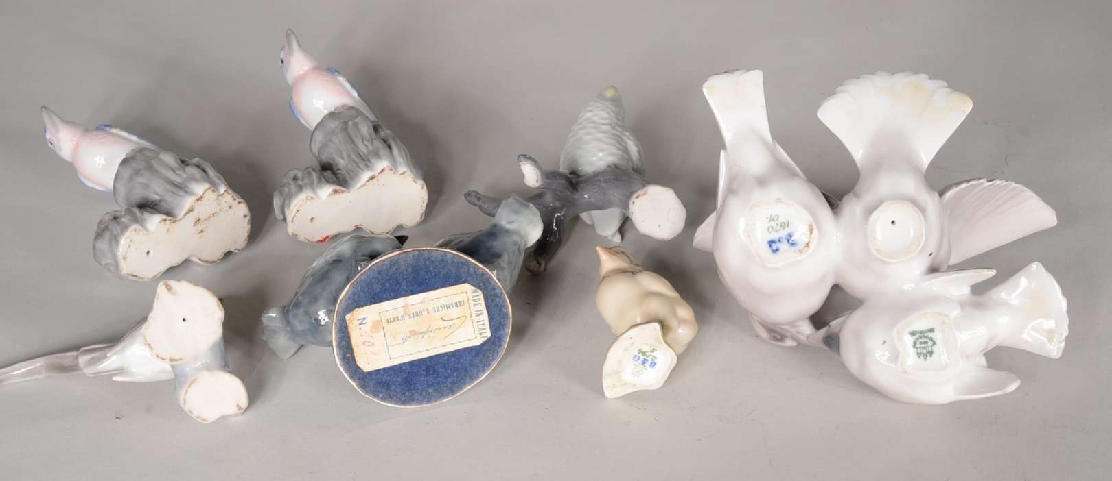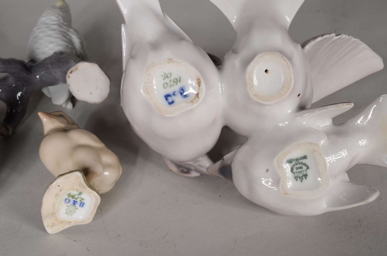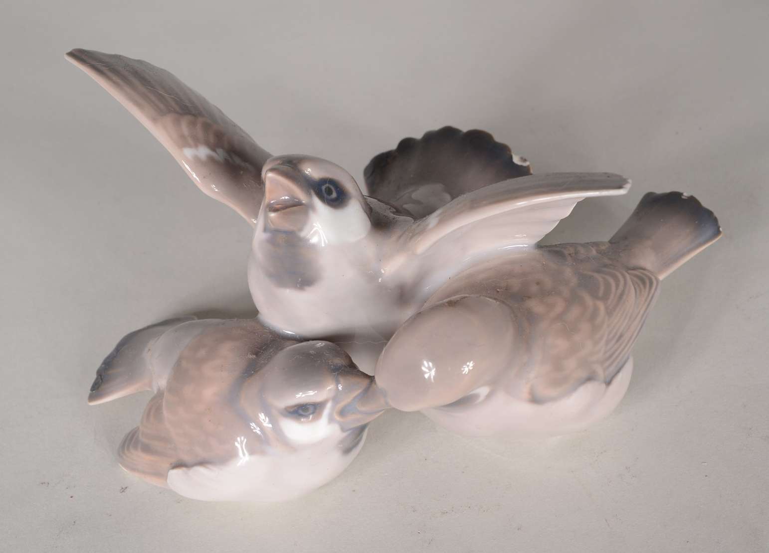 Duas esculturas de porcelana policromada representando casal de coelhos.