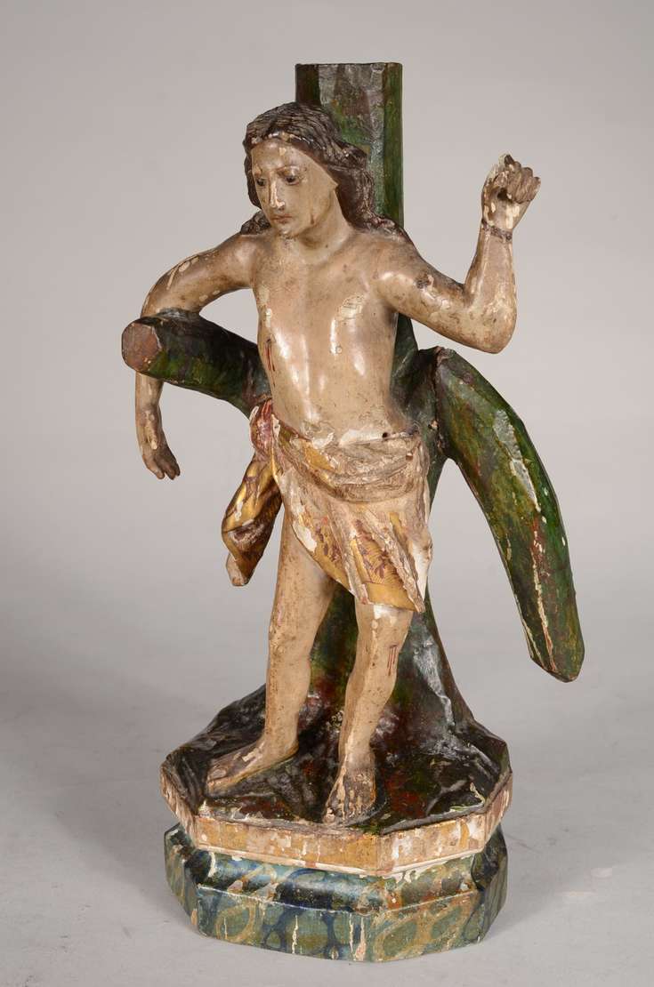 São José - Antiga imagem de madeira policromada. Desgastes.