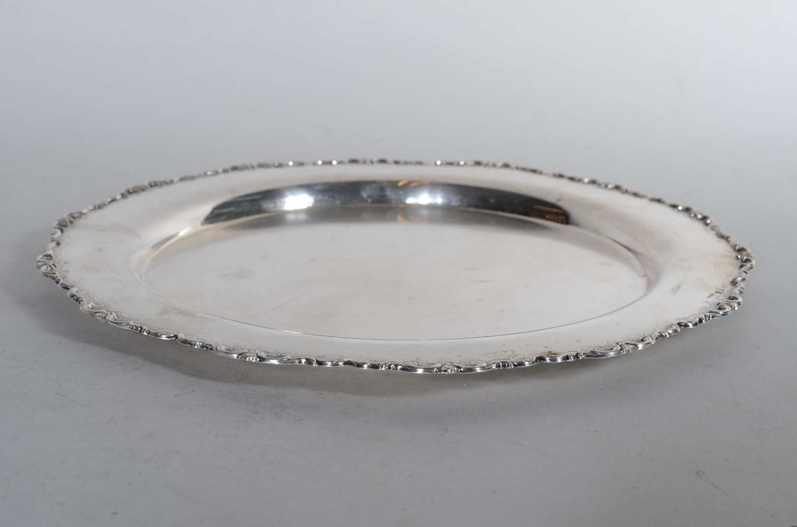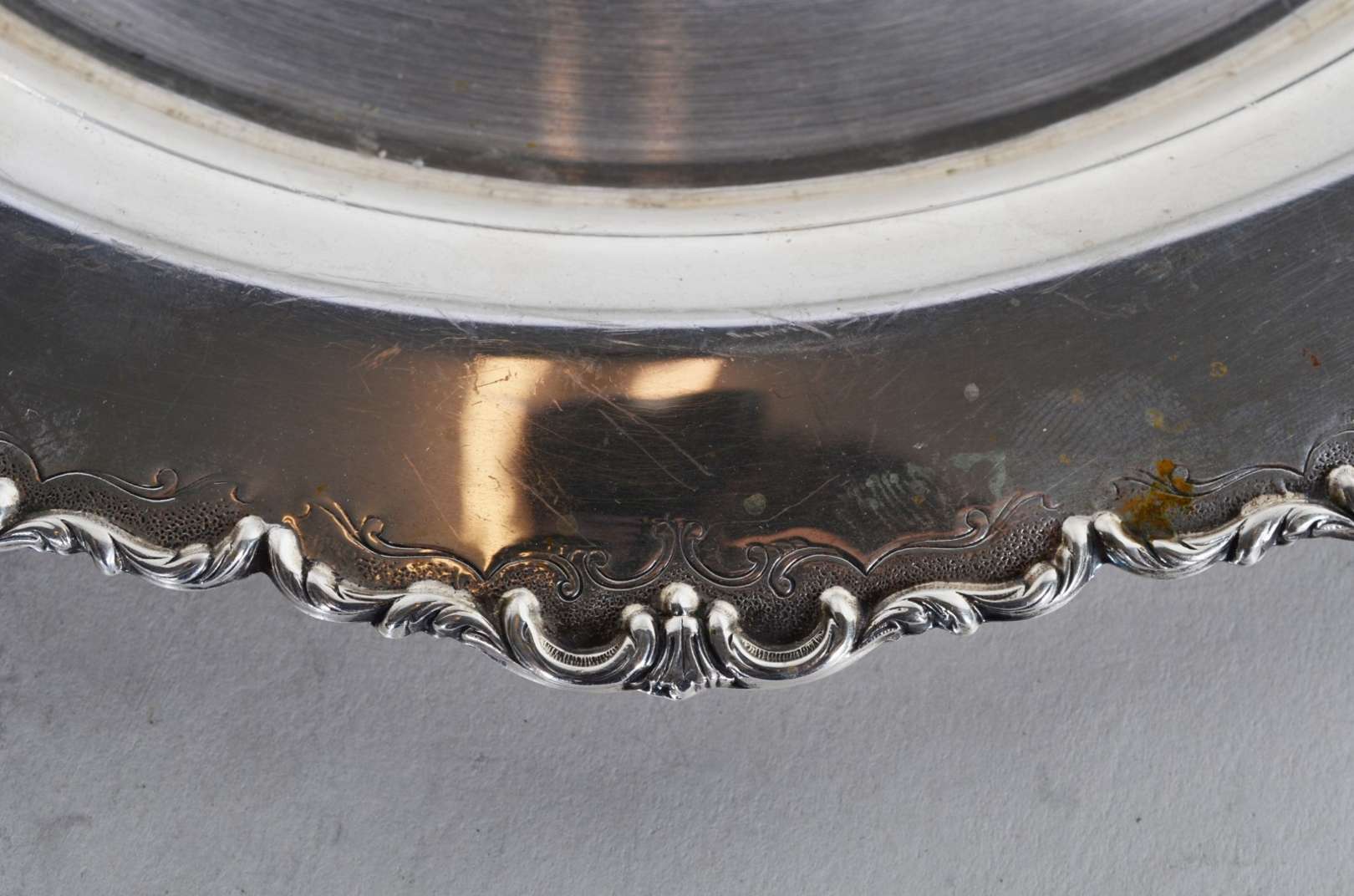 Prato de cristal francês Art Déco do início do século XX, superfície fosca com padrão geométrico gravado e conchas de...