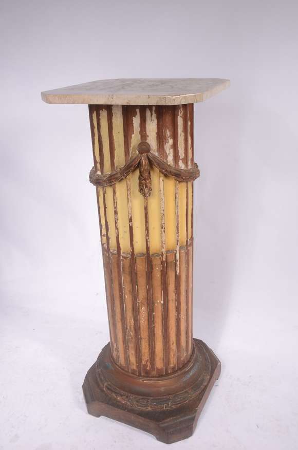 Coluna de alabastro, corpo cilíndrico trabalhado em gomos, base oitavada e tampo circular.