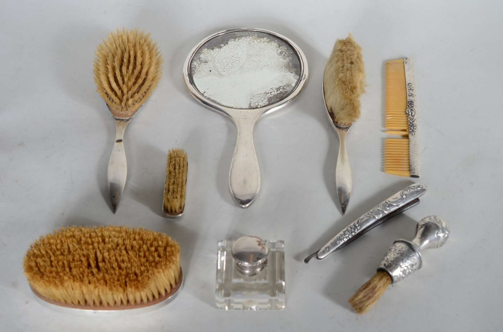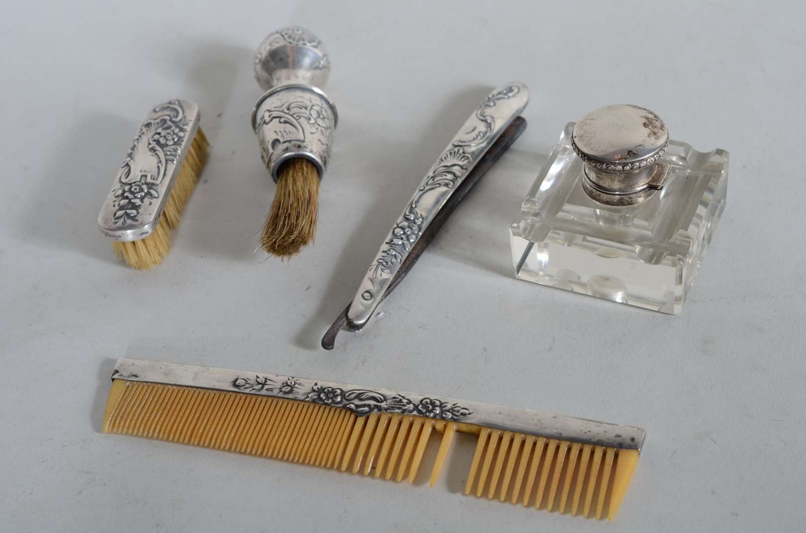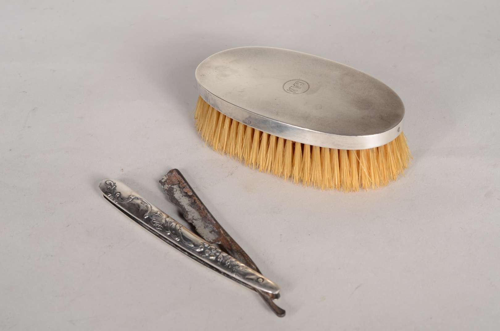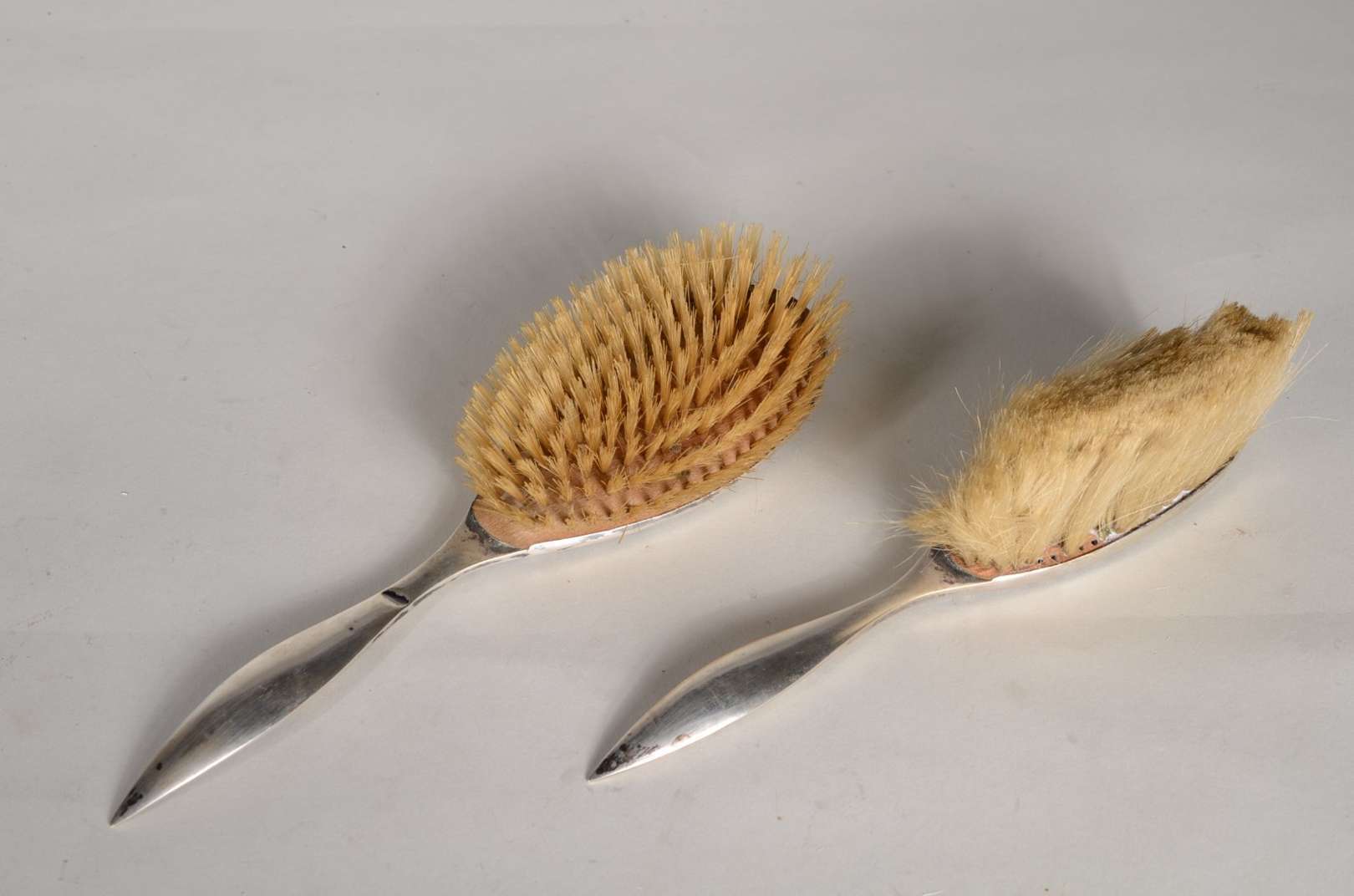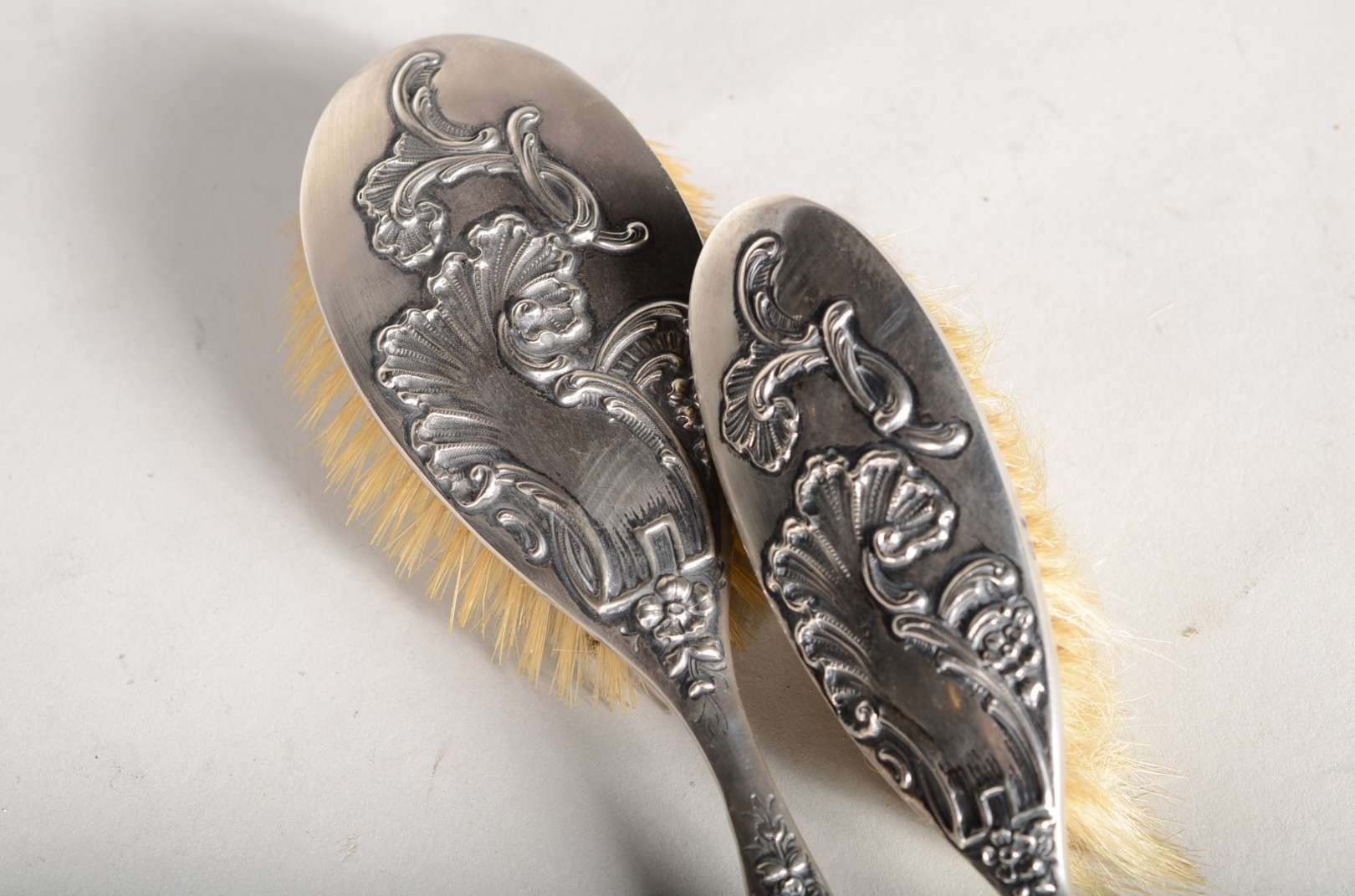 Duas peças para toillete de prata portuguesa, contraste P Coroa serrilhado. Peso da prata: 790 g. (Por motivos de se...
