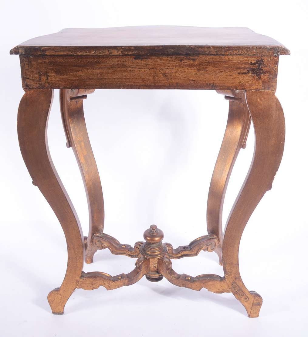 Dois móveis de madeira nobre, sendo: mesa auxiliar com uma gavetinha e saia recortada; e, cadeira com braços, assento...