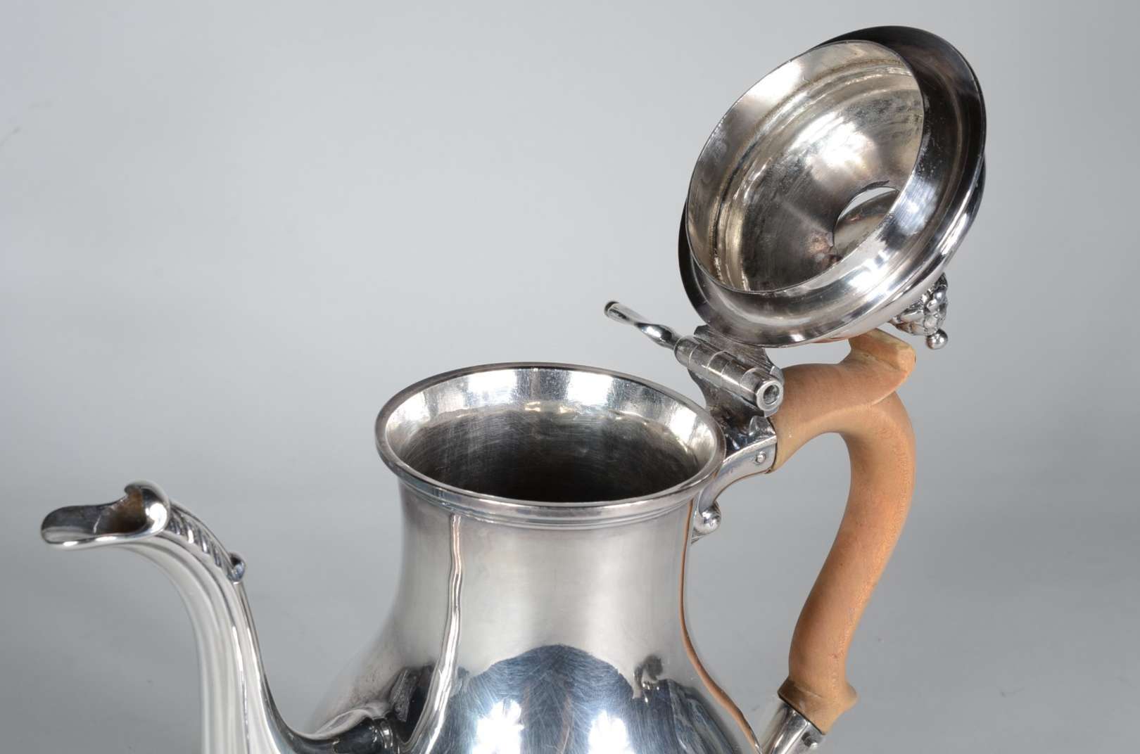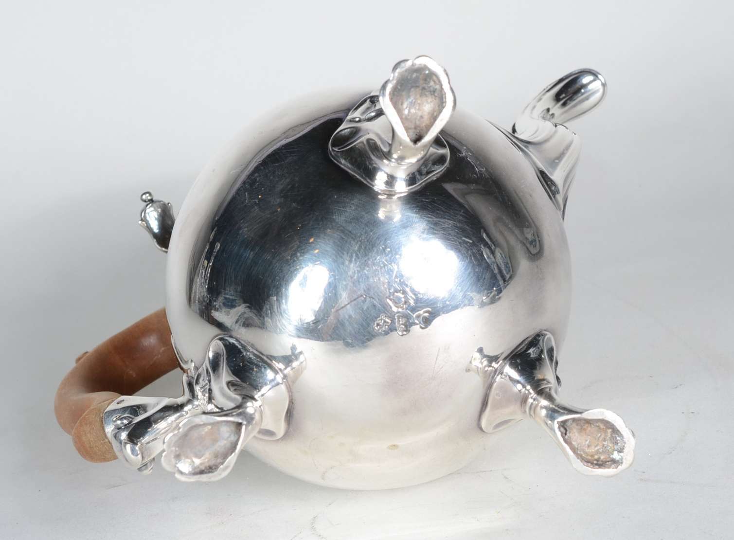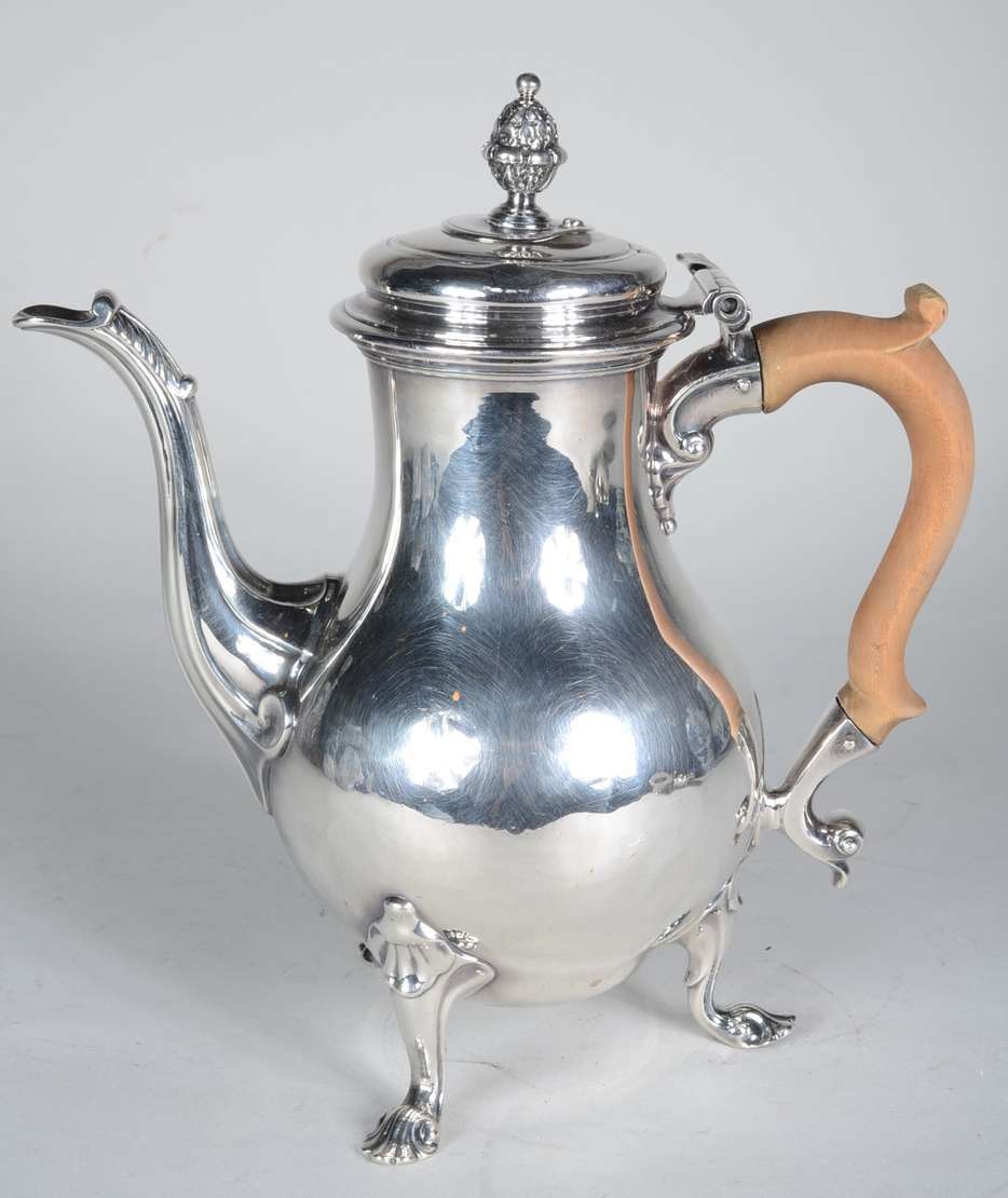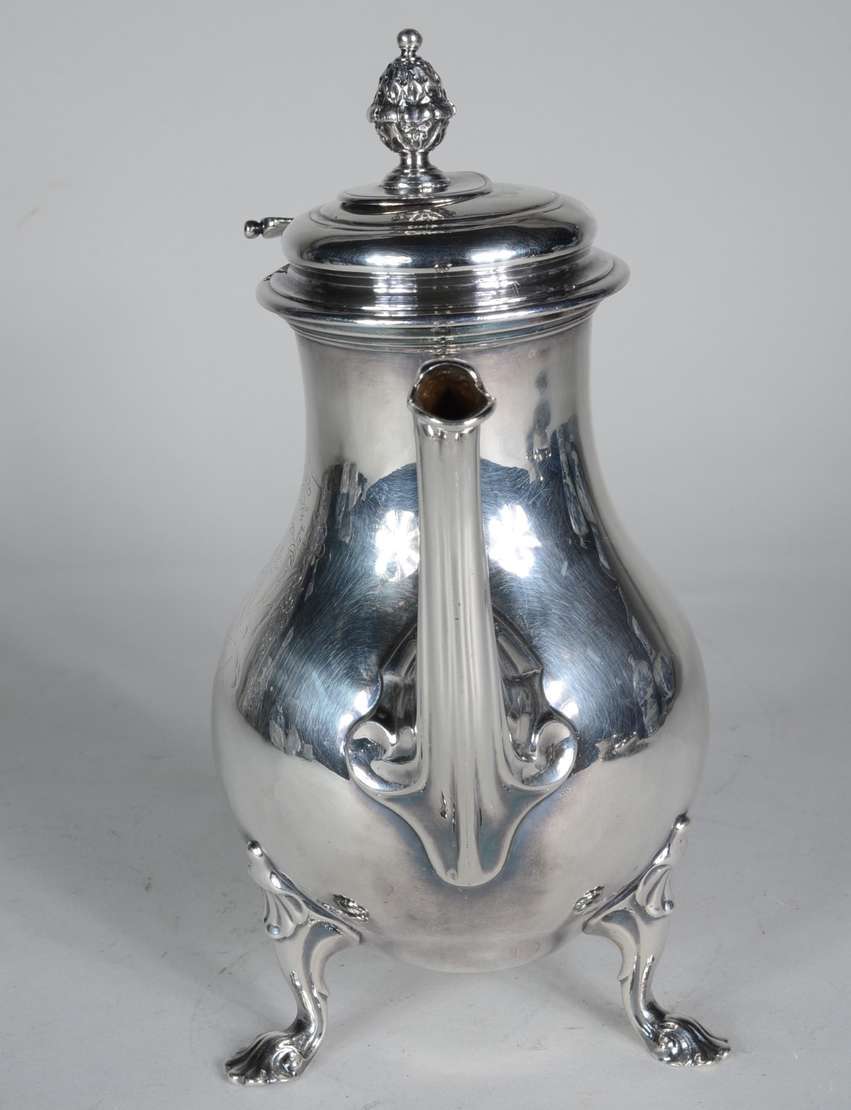 Baixela de chá e café de prata contraste 833 mls, trabalhada em gomos, composto de dois bules, açucareiro e leiteira....