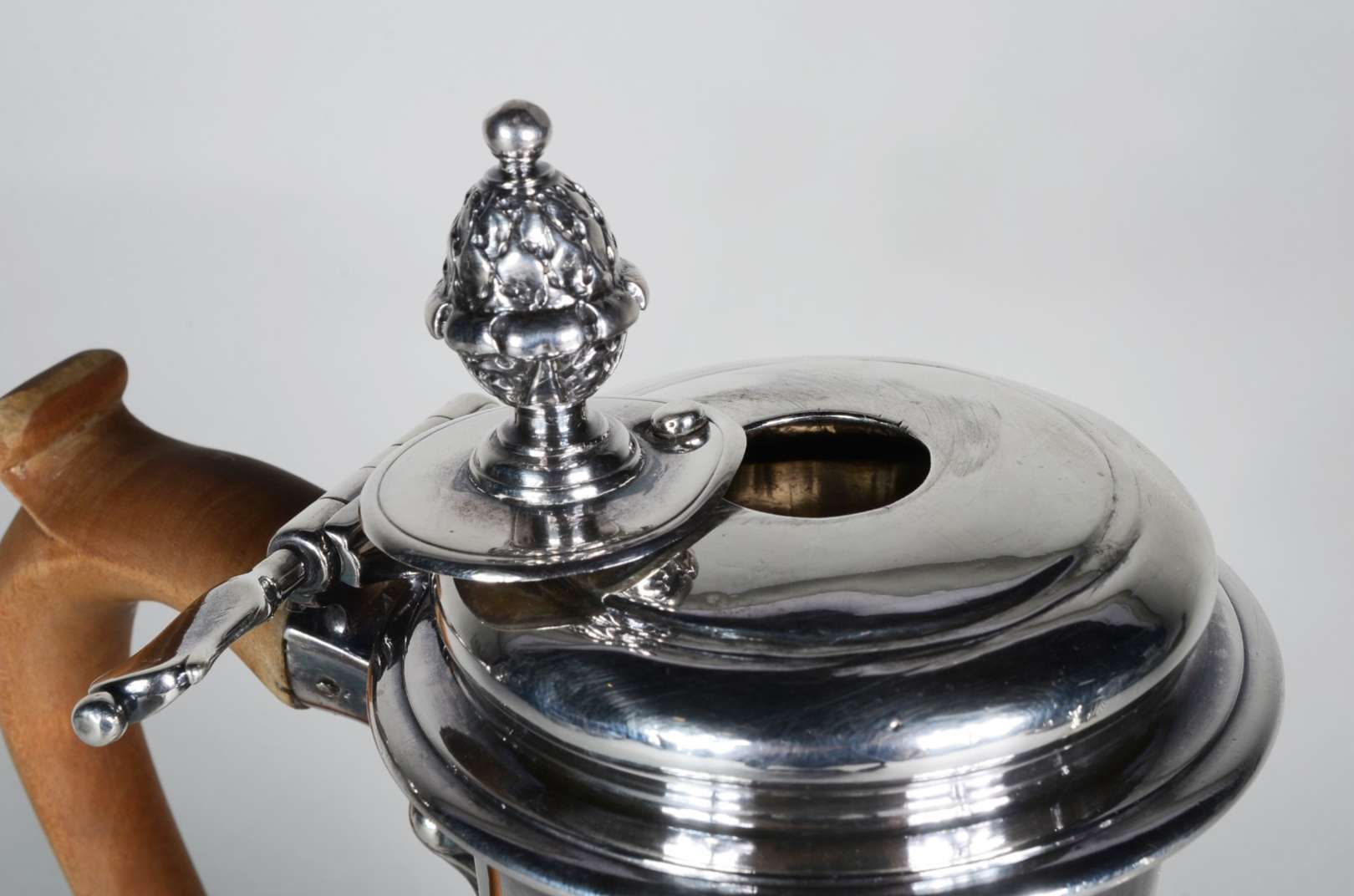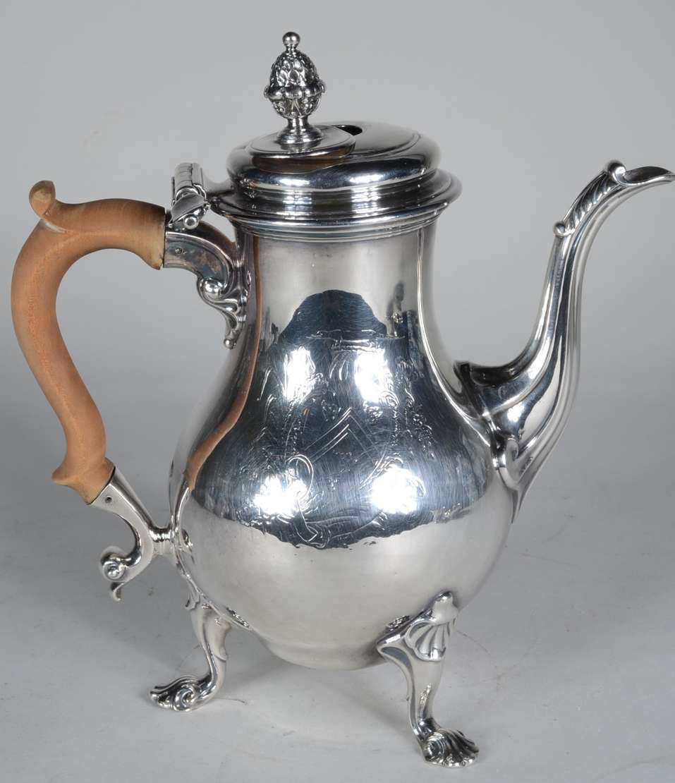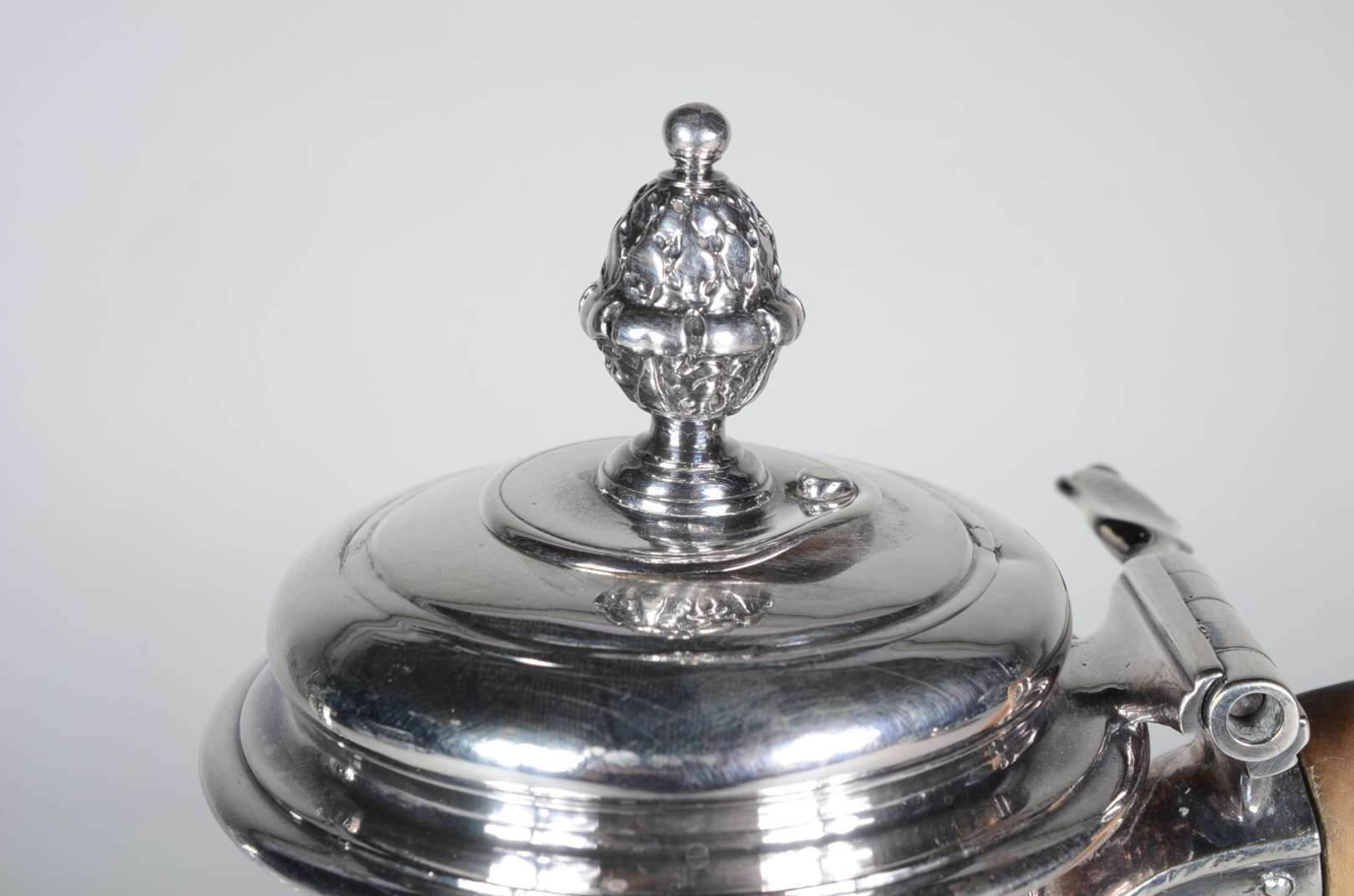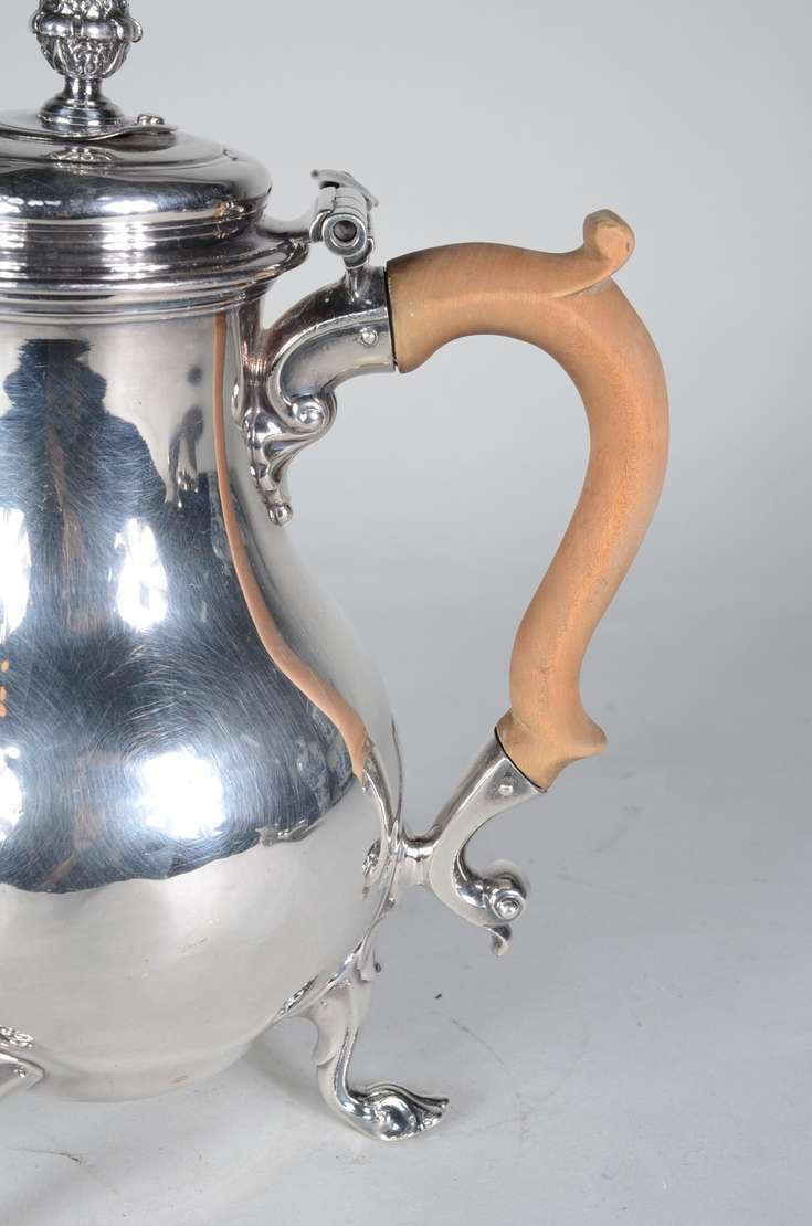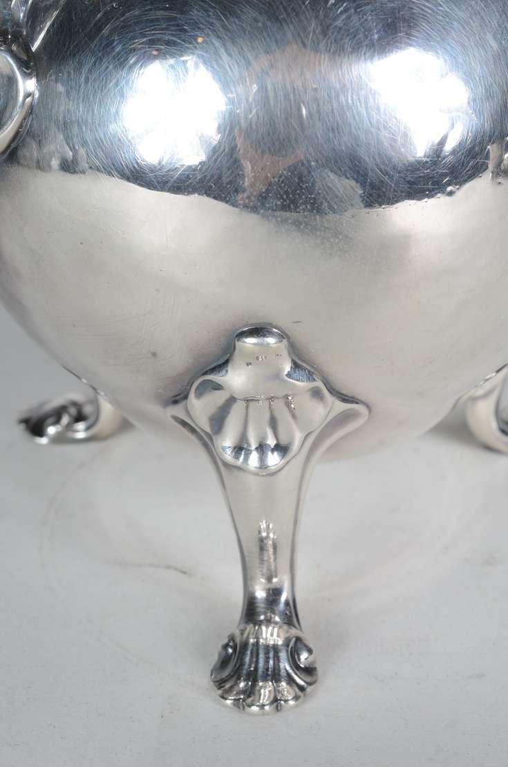 Baixela de chá e café de prata contraste 833 mls, trabalhada em gomos, composto de dois bules, açucareiro e leiteira....