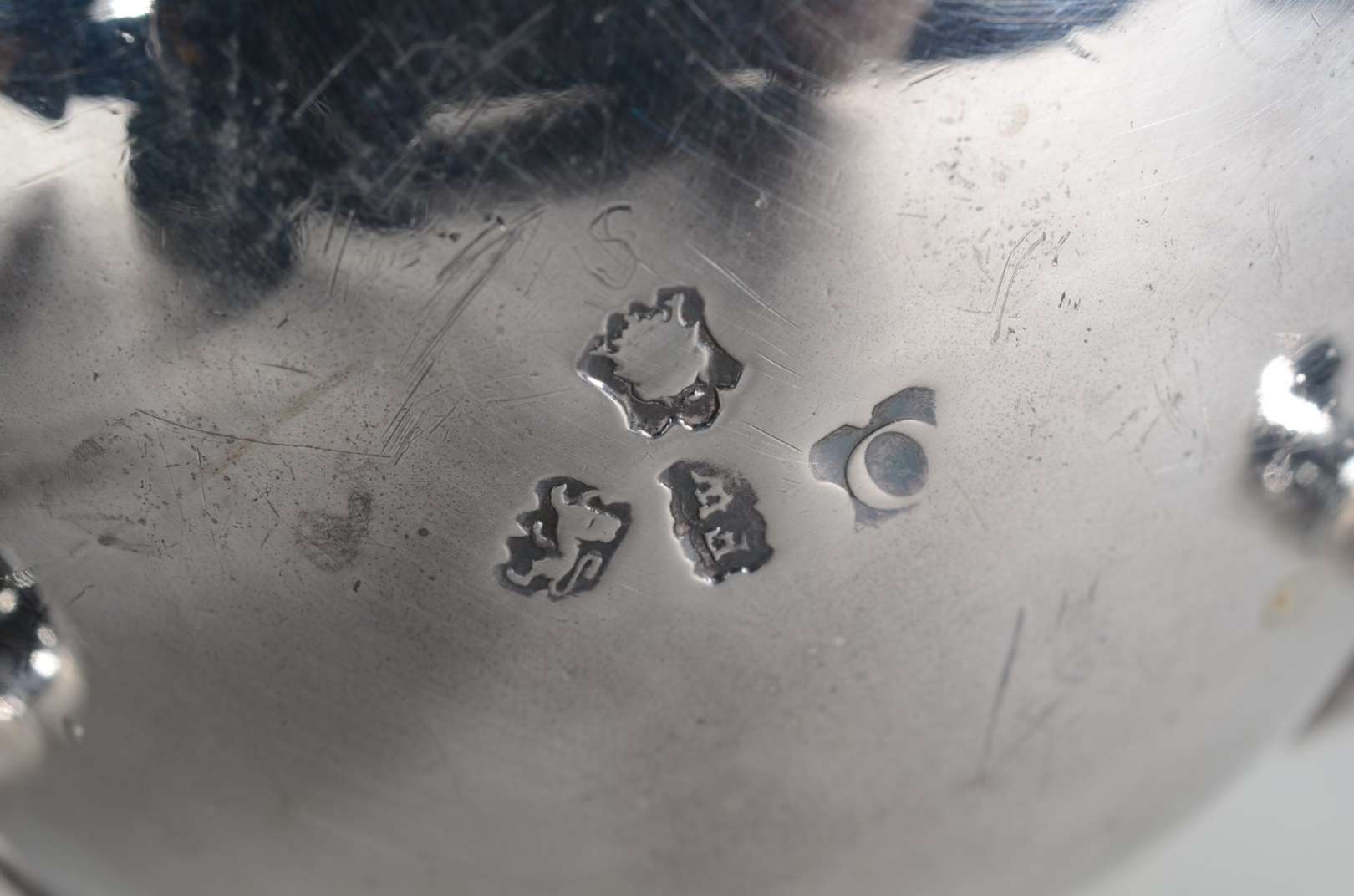 Duas peças de prata de lei, sendo: Base para galheteiro e pequeno prato (pequenos defeitos). Peso da prata: 380 g. (...