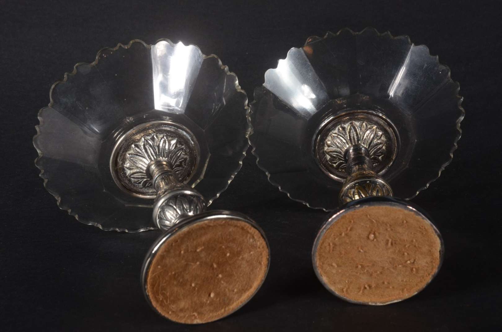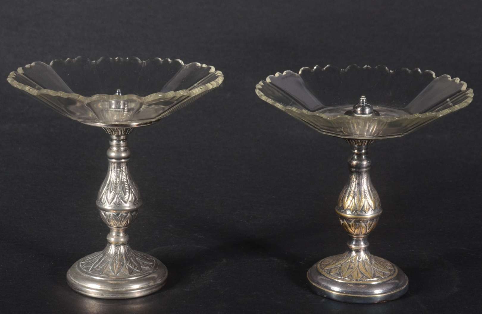 Duas peças de prata de lei, sendo: Base para galheteiro e pequeno prato (pequenos defeitos). Peso da prata: 380 g. (...
