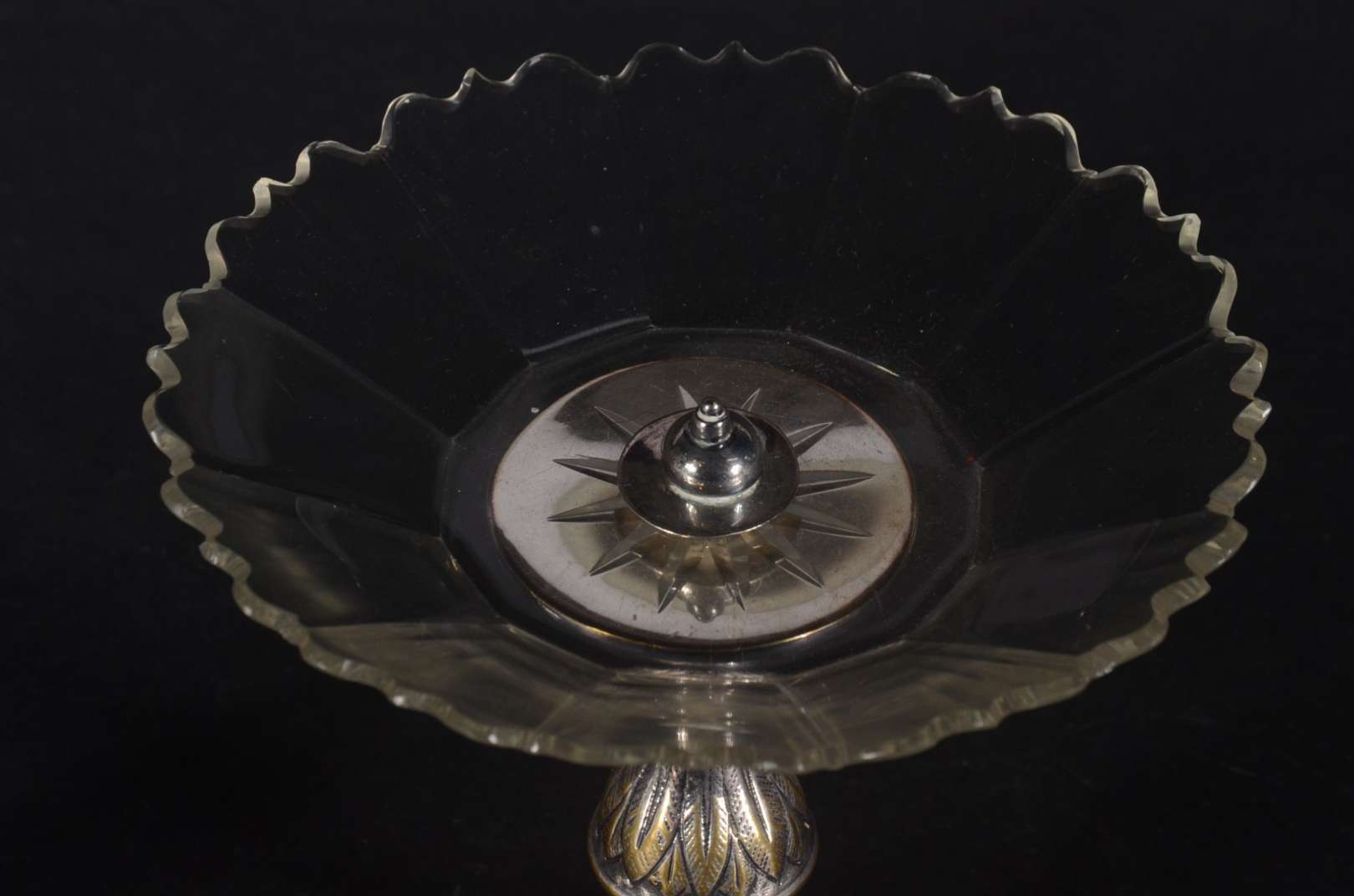 Centro de mesa/fruteira de metal alemão WMF, prato maior e tres cestas em balanço com recipientes internos de cristal...