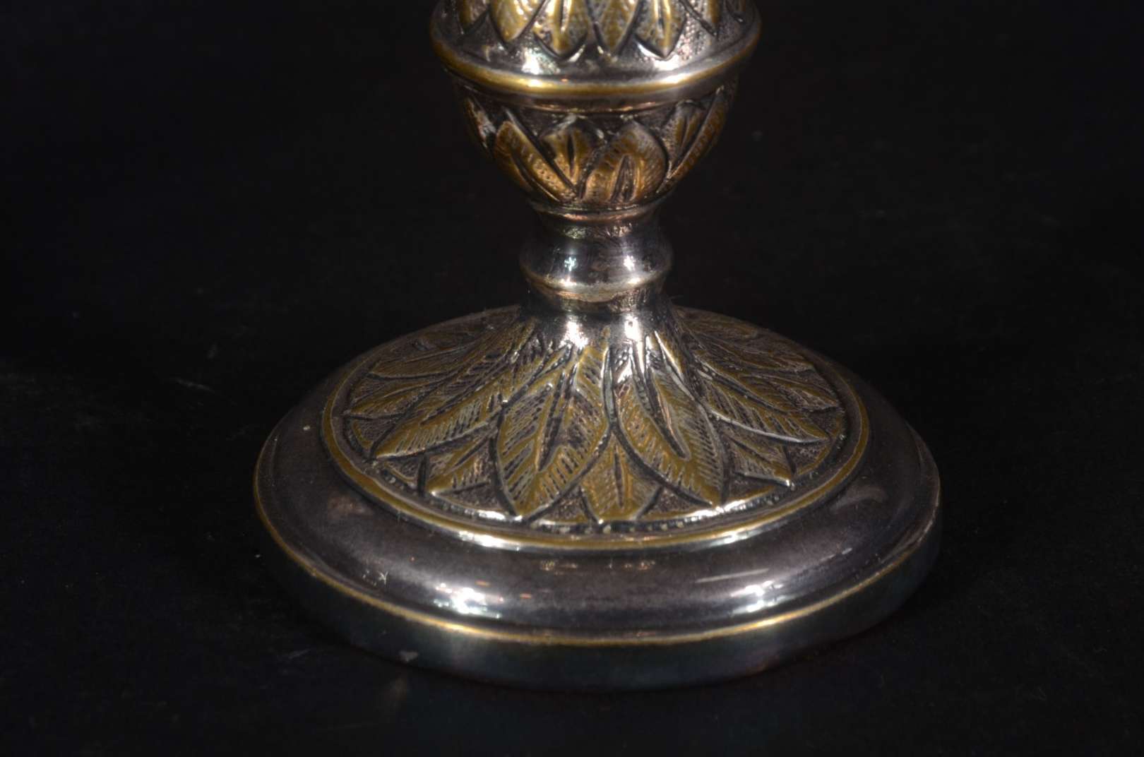 Sopeira de prata com vermeil, contraste Sterling 925 mls. Parte interna com inscrições e datada de 1958. Desgastes no...