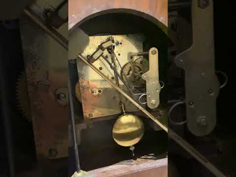 Relógio de mesa de bronze com placas de porcelana e figuras de camponeses. Funcionando.