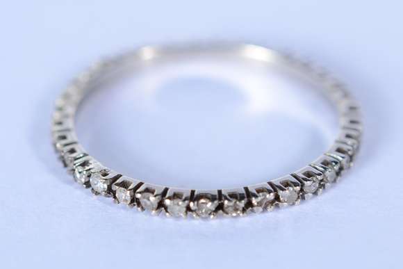 Aliança completa de ouro branco cravejado com 25 brilhantes, aro 13. (Por motivos de segurança a peça não se encontra...