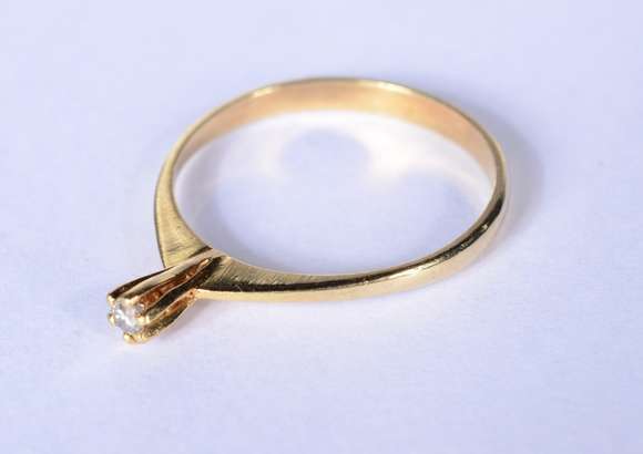 Solitário de ouro 18 k., contraste 750 mls com um brilhante de 0,05 ct, aro 17. (Por motivos de segurança a peça não ...