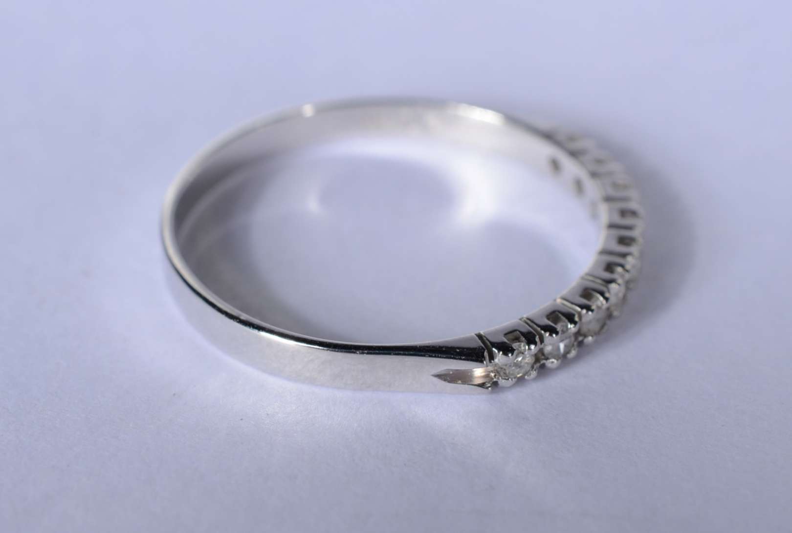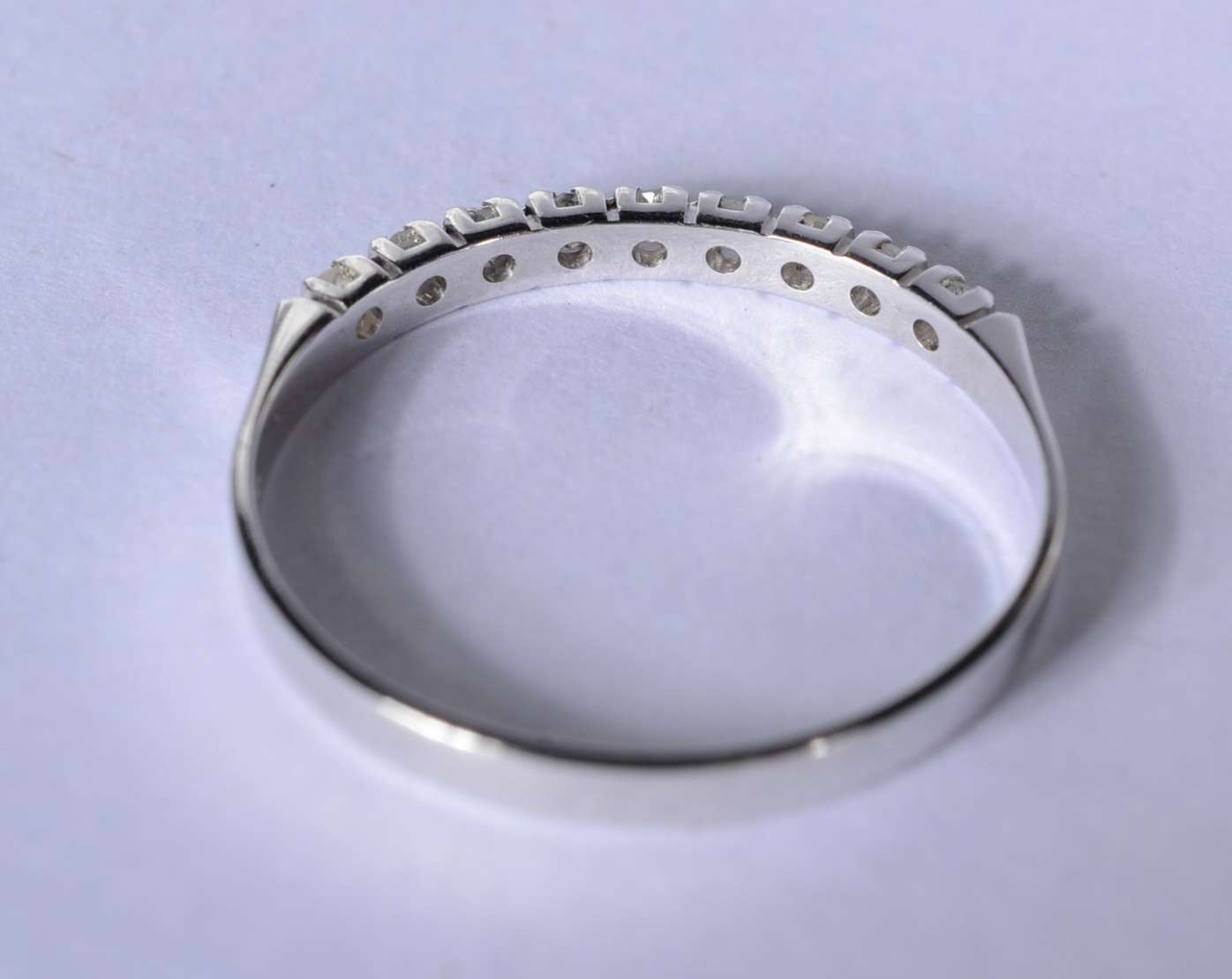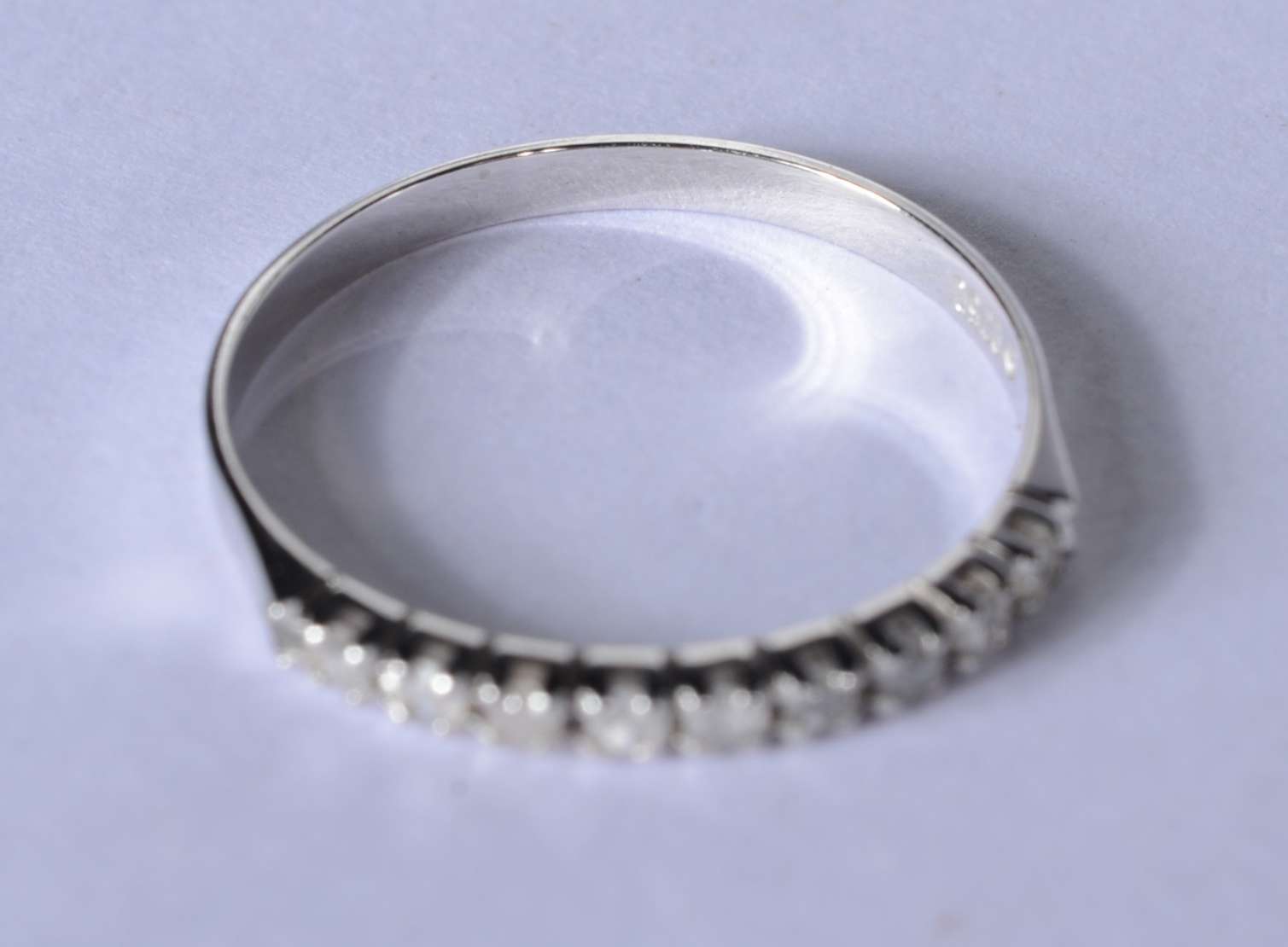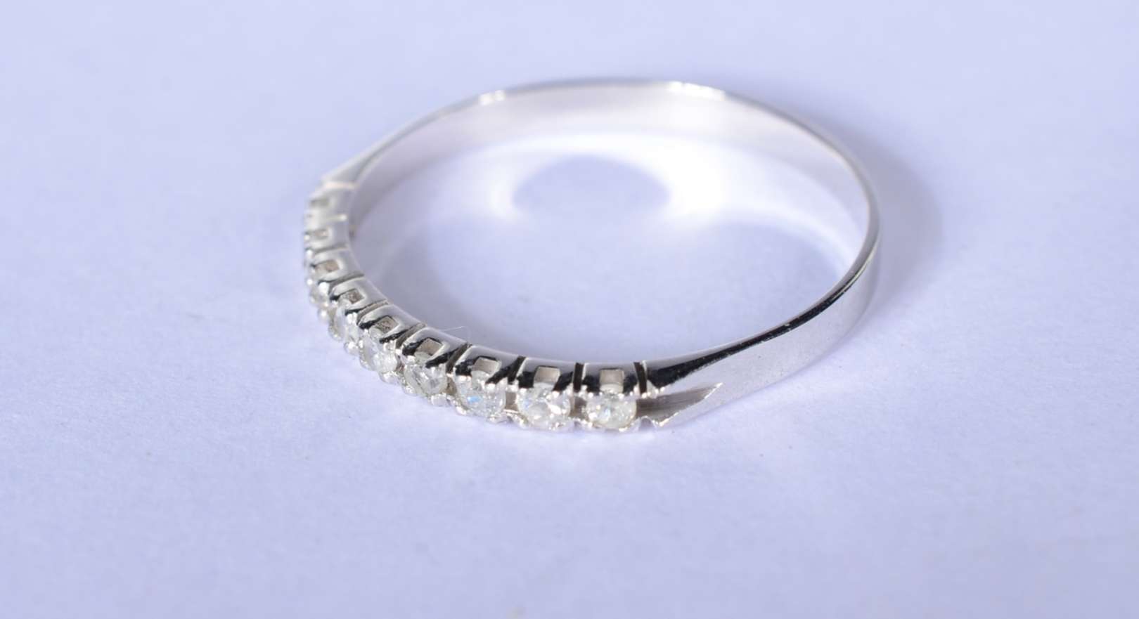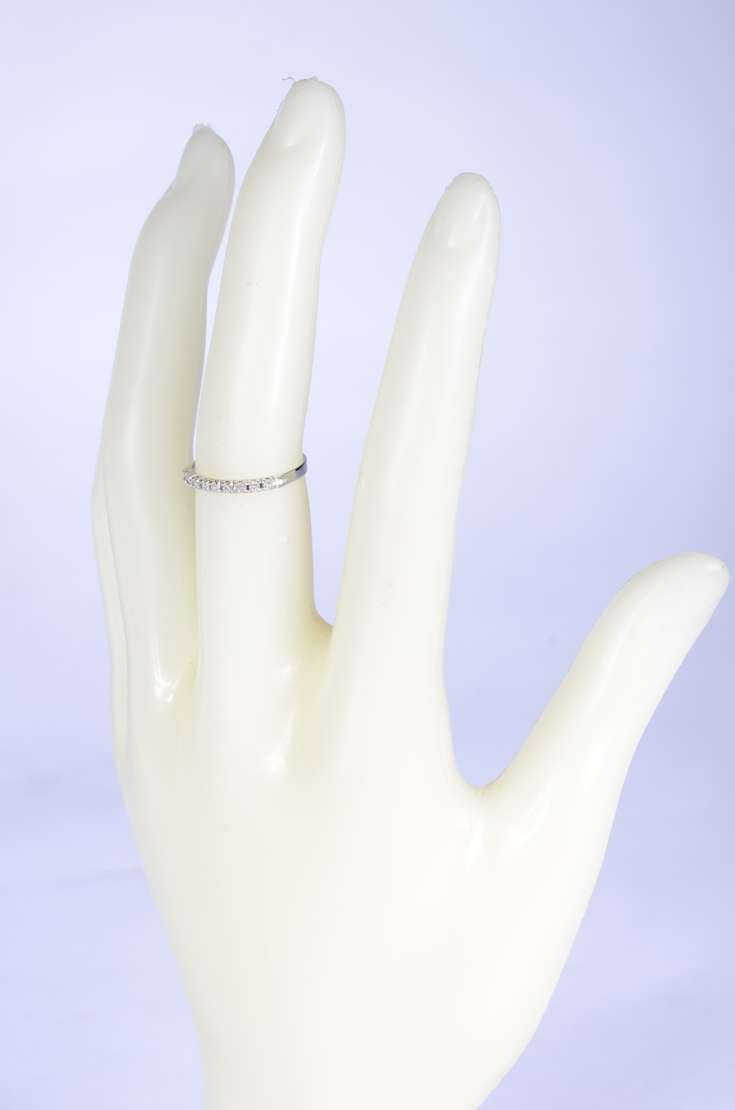 Aliança completa de ouro branco cravejado com 25 brilhantes, aro 13. (Por motivos de segurança a peça não se encontra...