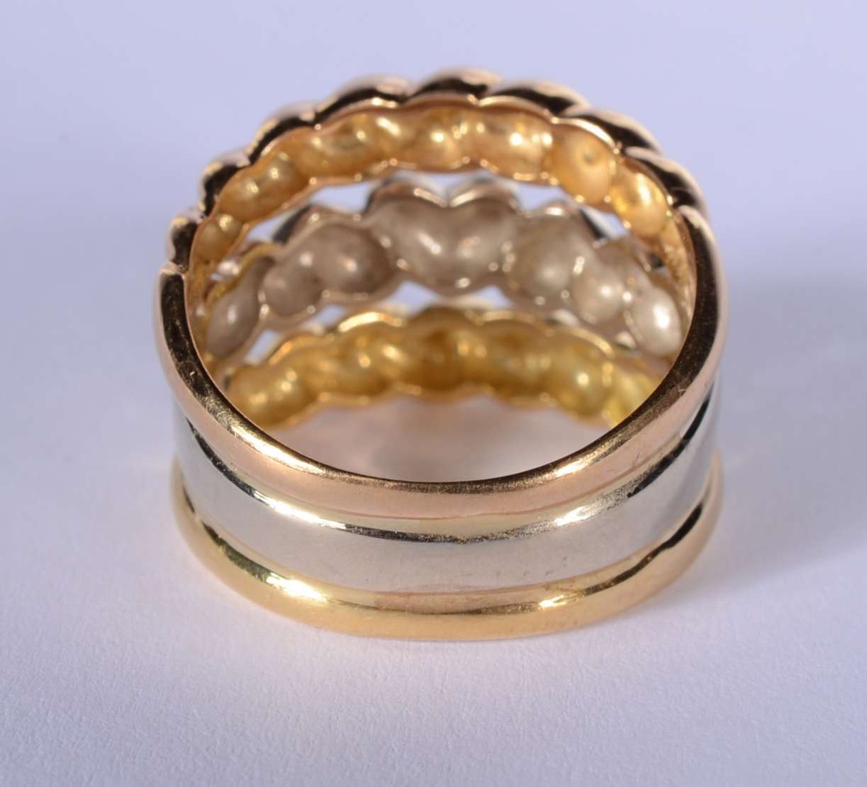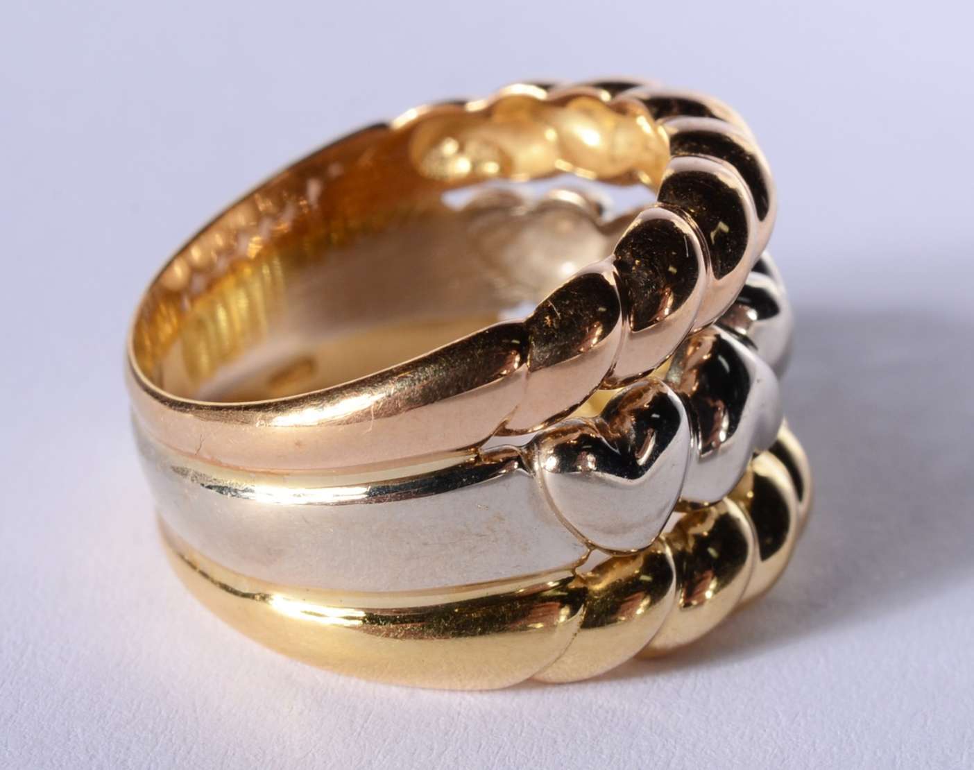 Aliança completa de ouro branco cravejado com 25 brilhantes, aro 13. (Por motivos de segurança a peça não se encontra...