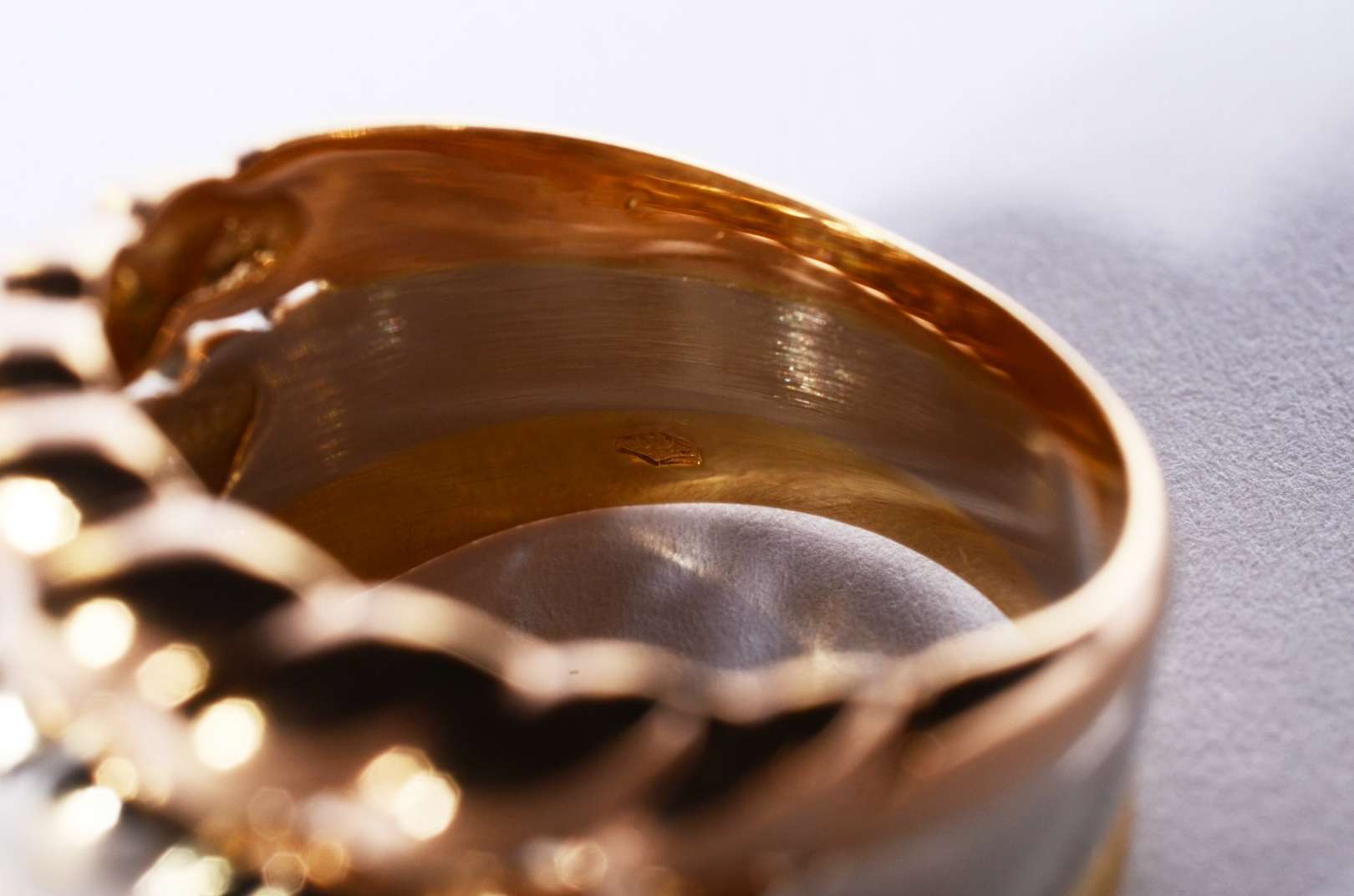 Anel de ouro 18 k., aproximadamente 36 brilhantes, aro 16. . (Por motivos de segurança a peça não se encontra na loja).