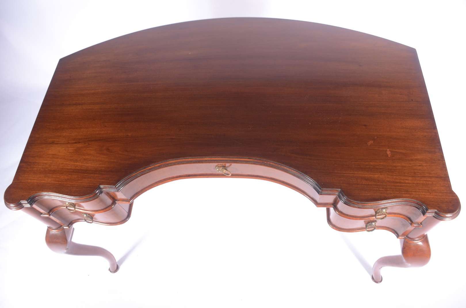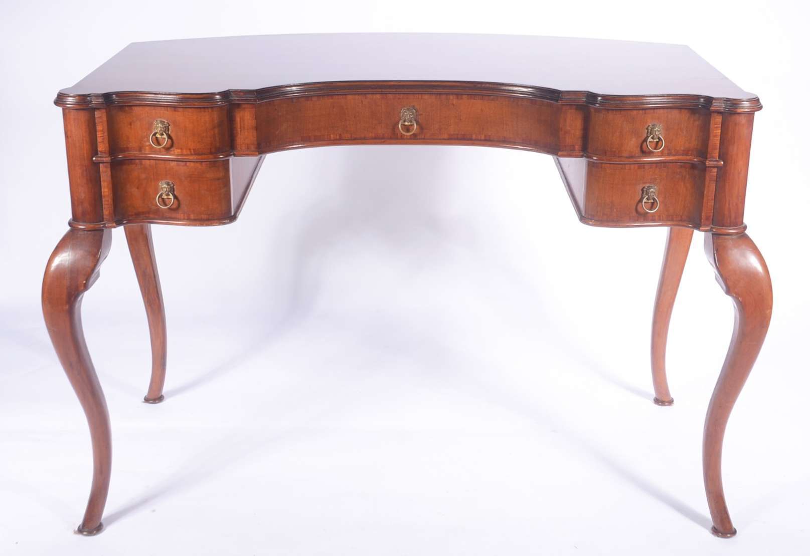 Escrivaninha de madeira nobre, tampo esteirinha com escaninhos internos, parte inferior com gavetas, e porta de estei...