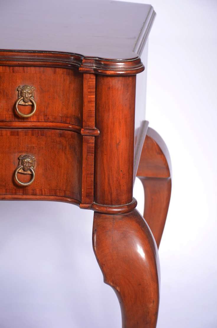Dois móveis de madeira nobre, sendo: mesa auxiliar com uma gavetinha e saia recortada; e, cadeira com braços, assento...