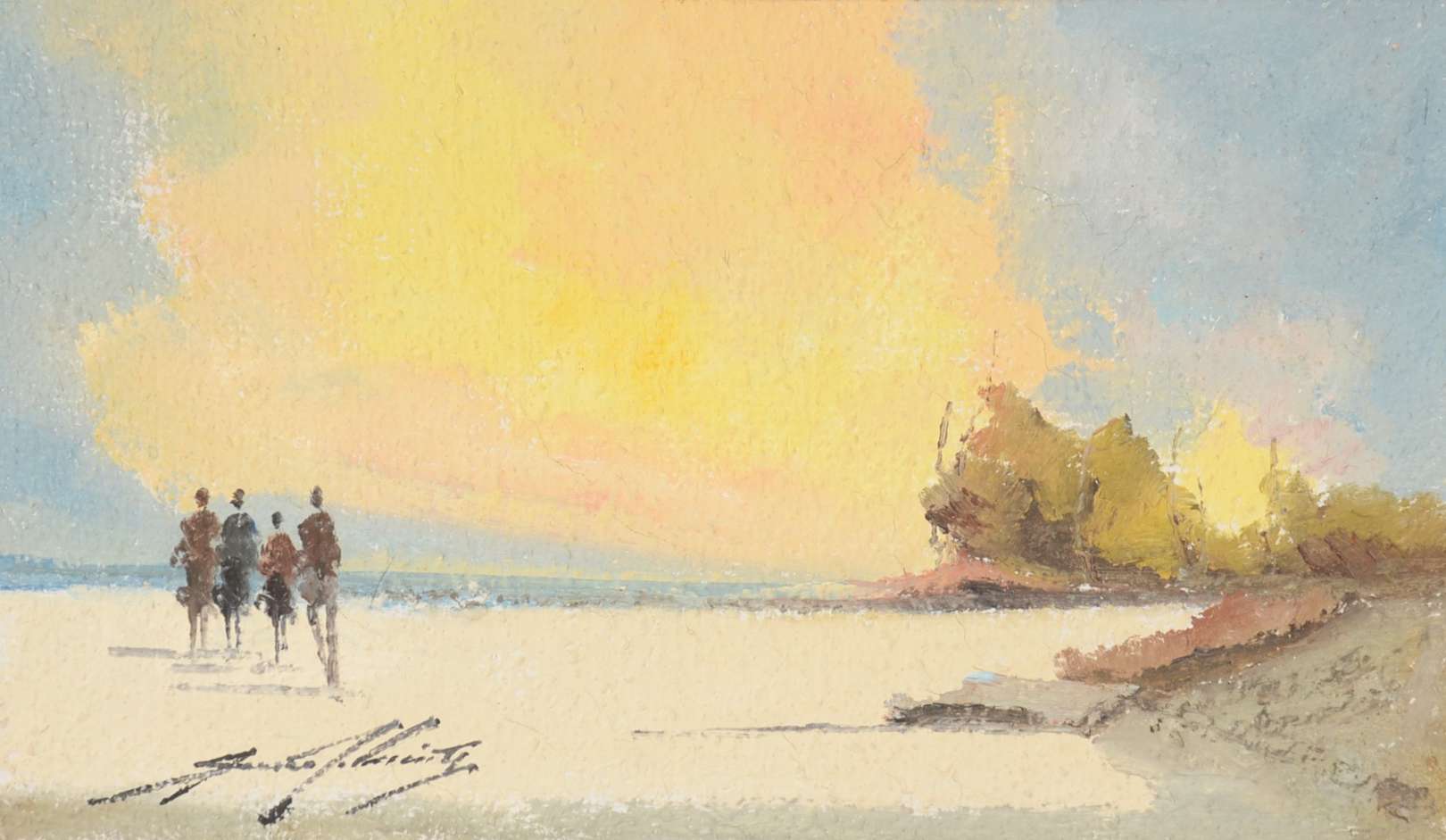 Óleo sobre tela. Com craquelê e perda de tinta, precisando de restauro.
