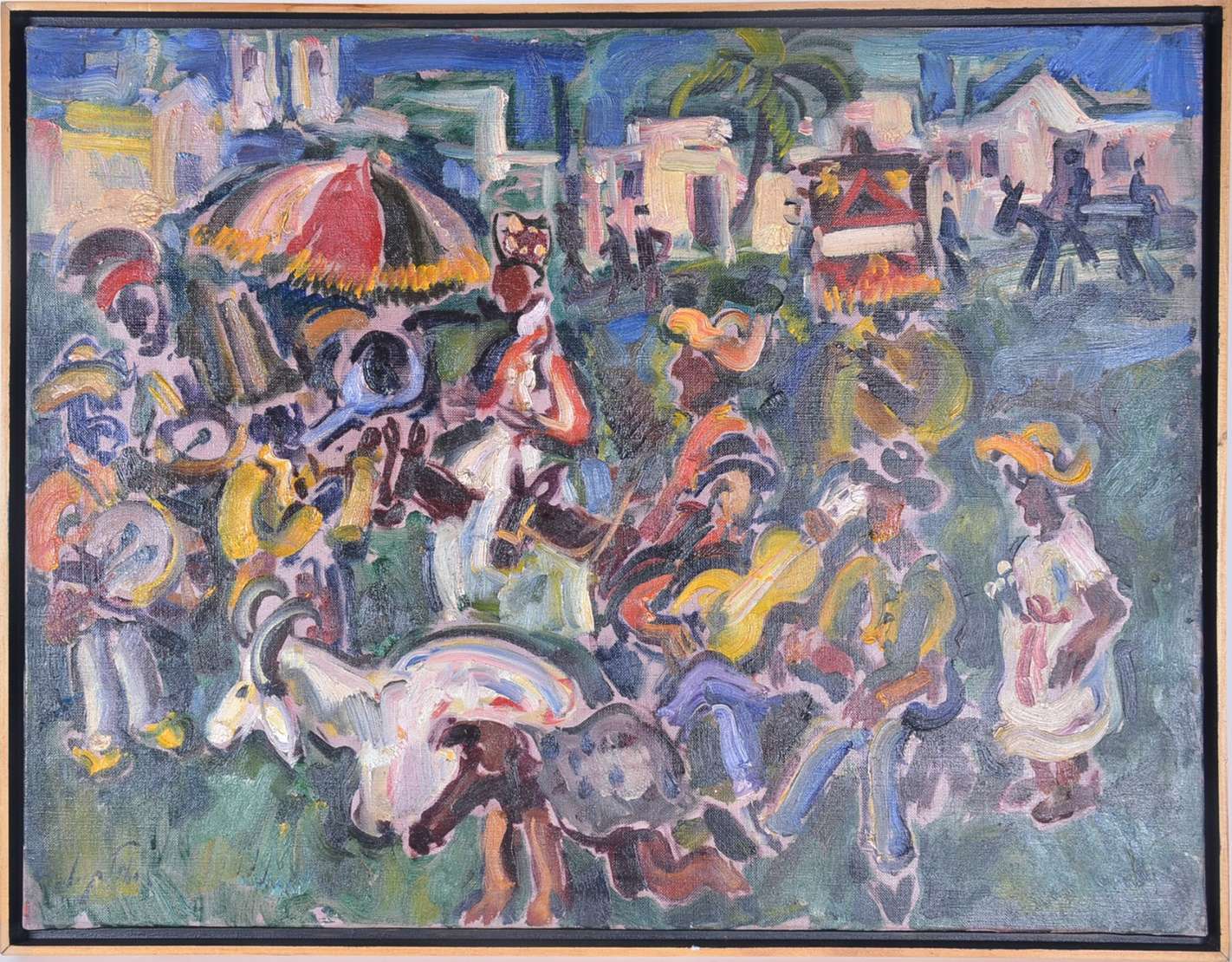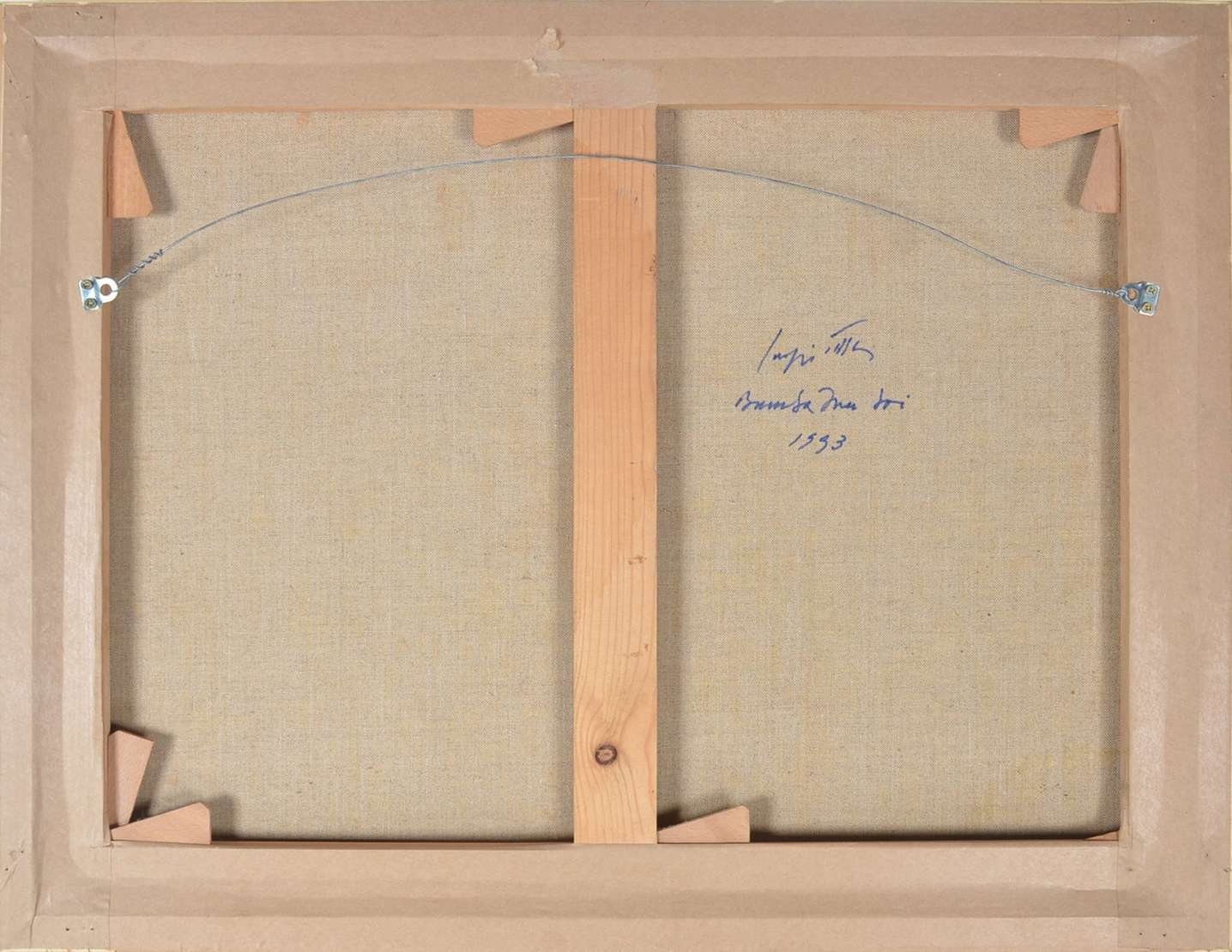 Óleo sobre tela. Moldura com cupim, pequeno rasgo na tela e perda de tinta, precisando de restauro.