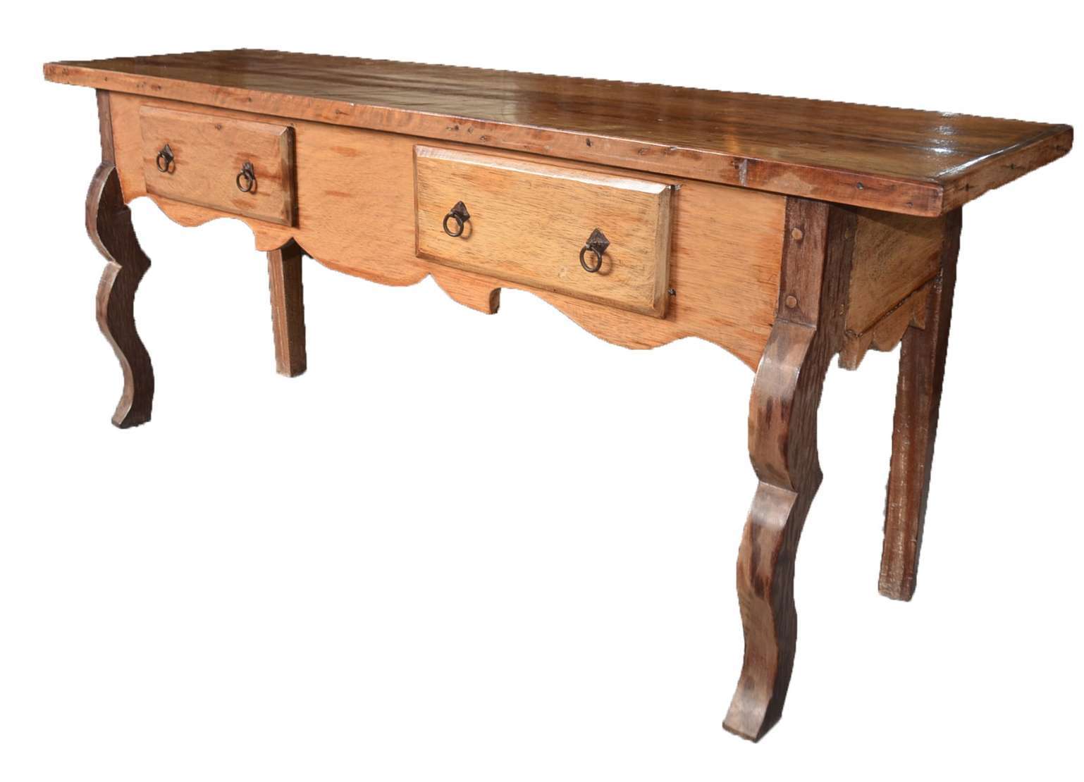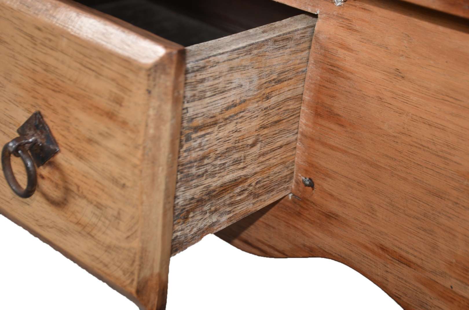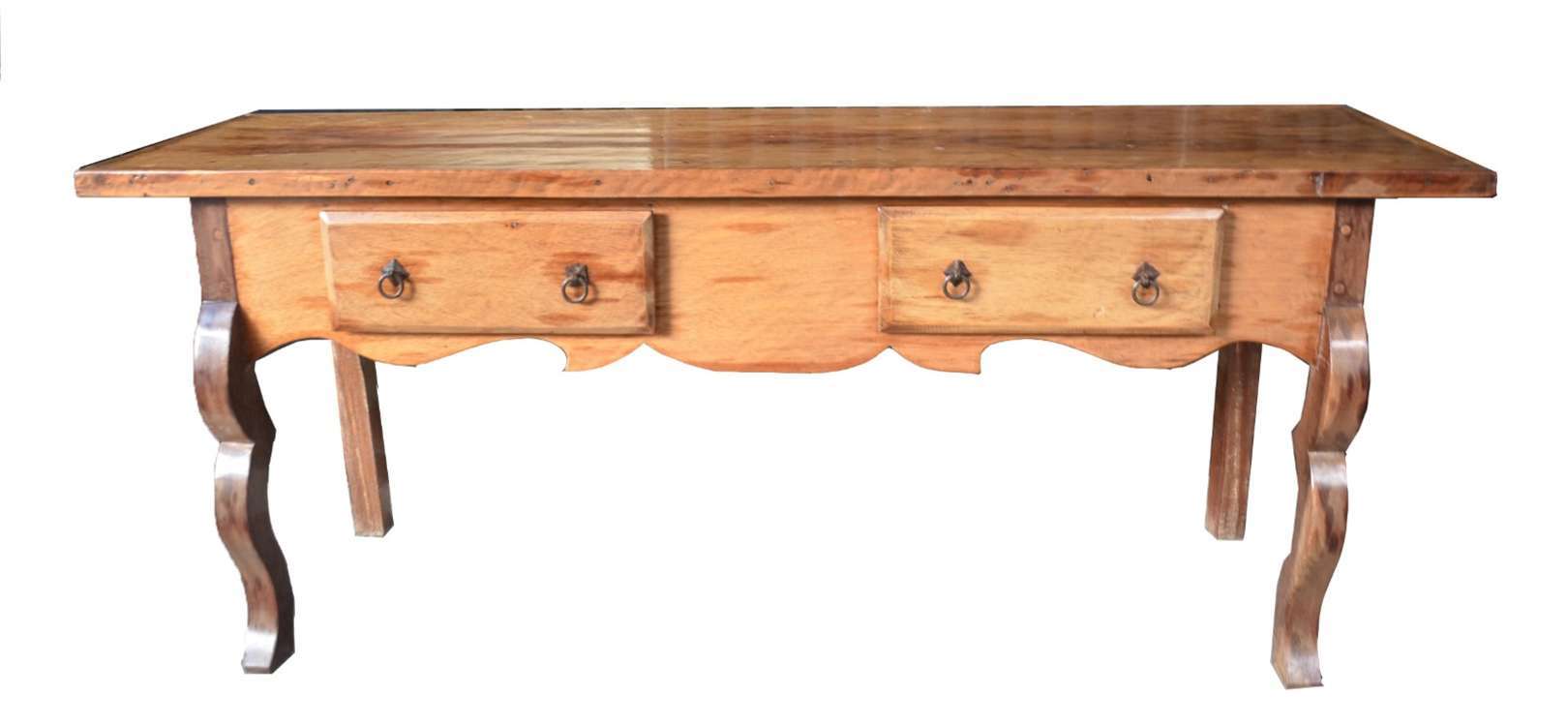 Aparador de madeira clara, platô inferior, 2 gavetas com puxadores de metal.