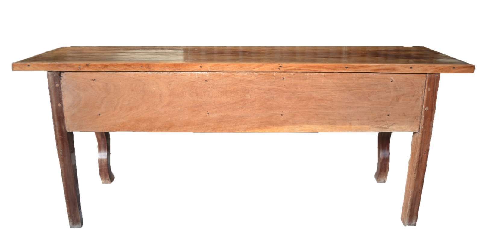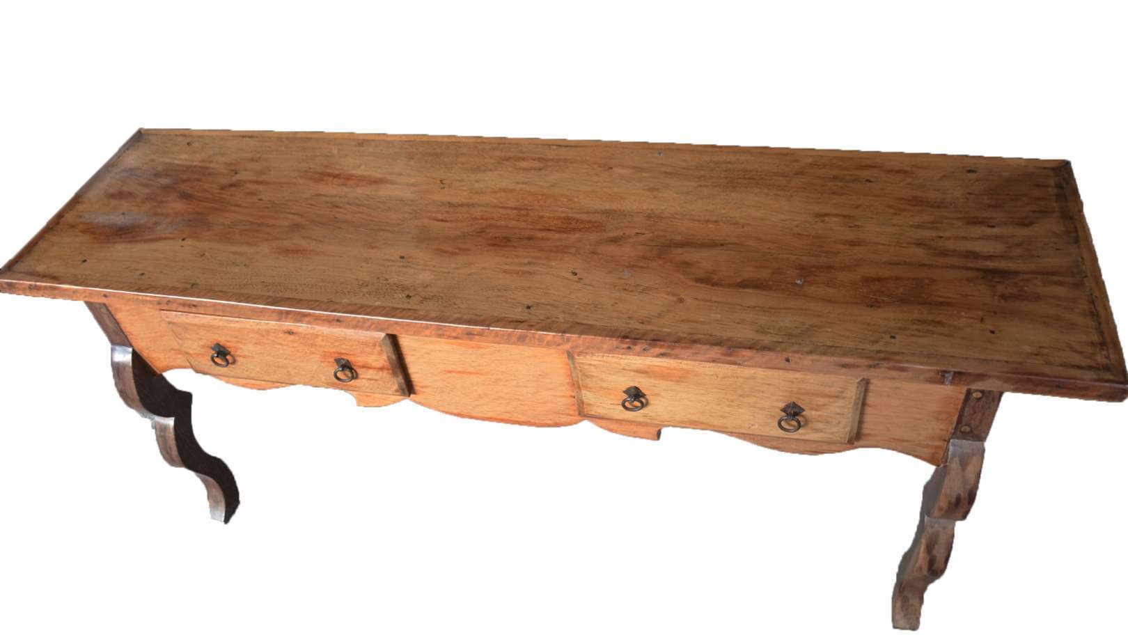 Dois móveis de madeira nobre, sendo: mesa auxiliar com uma gavetinha e saia recortada; e, cadeira com braços, assento...