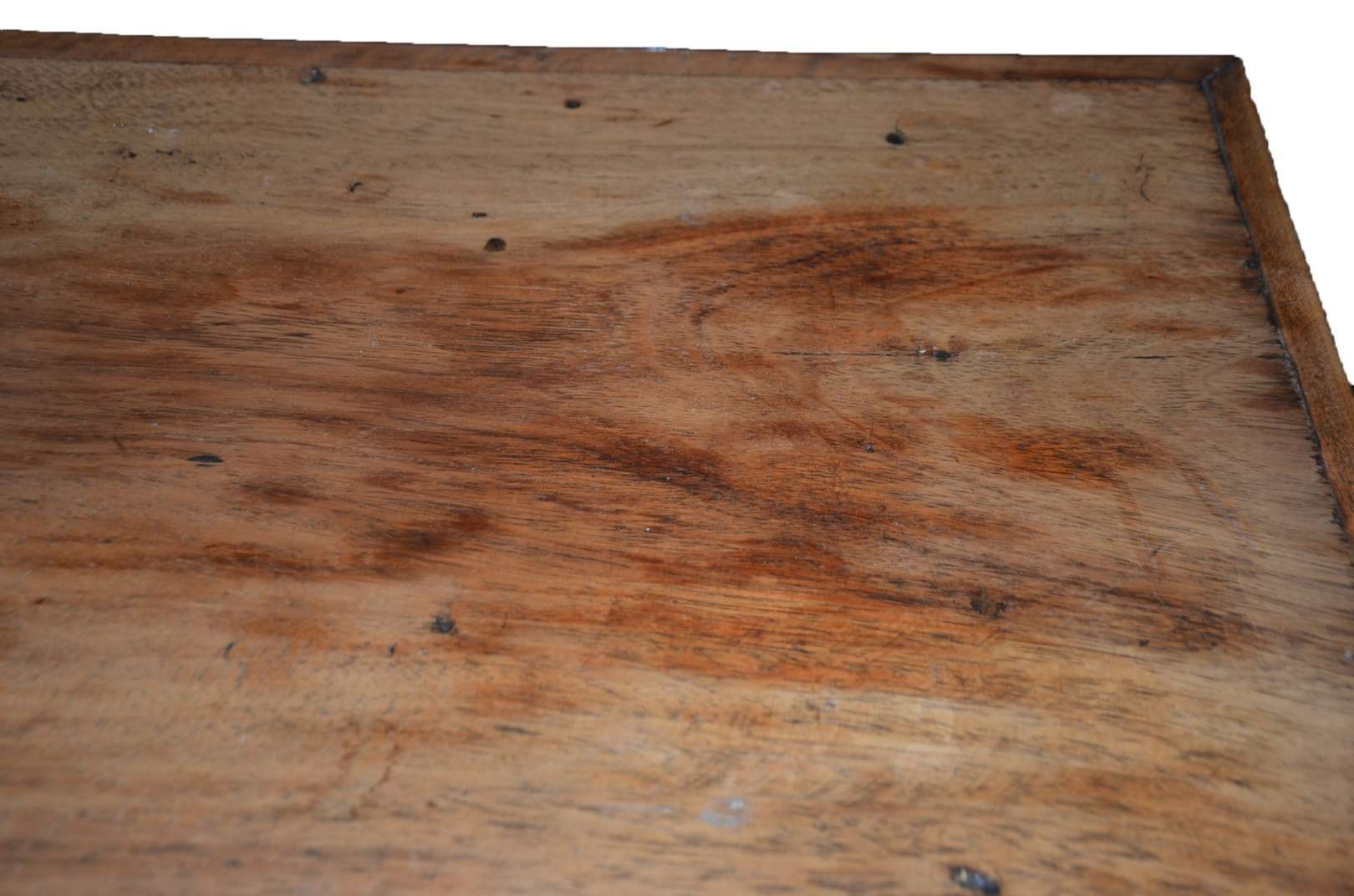 Mesa ninho de madeira nobre com 3 peças de encaixar, tampos de fórmica. Anos 60. Pequenos desgastes nos pés.