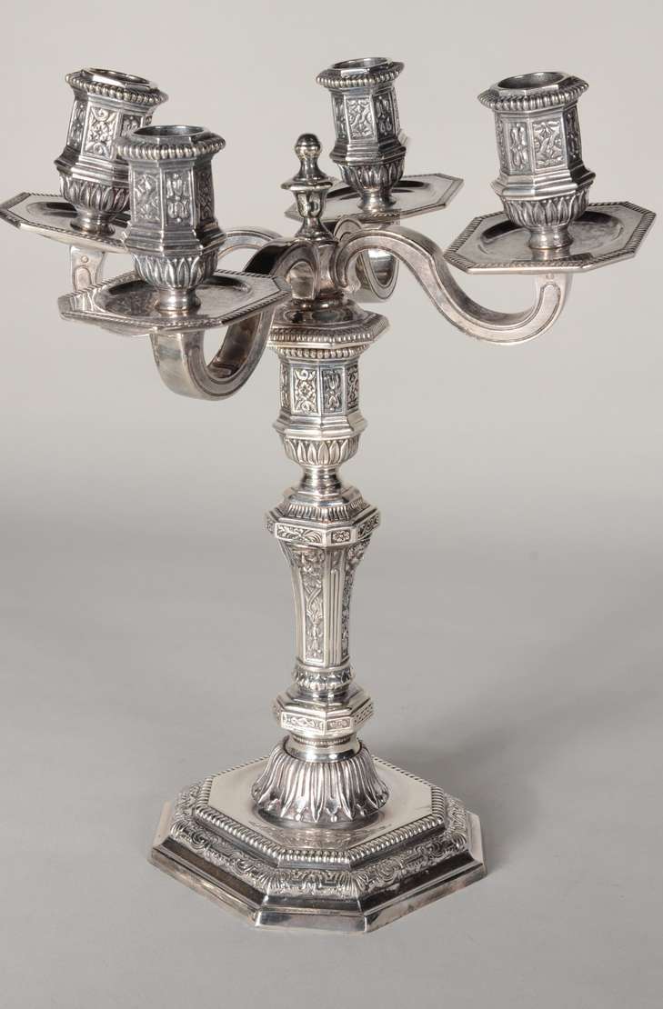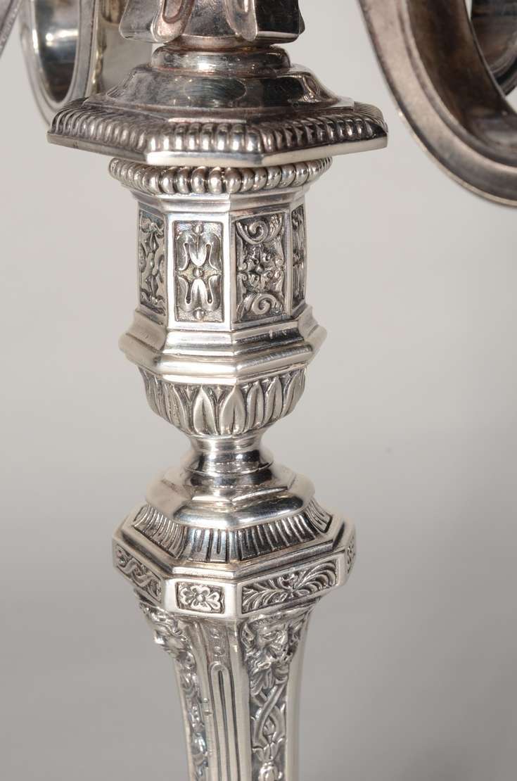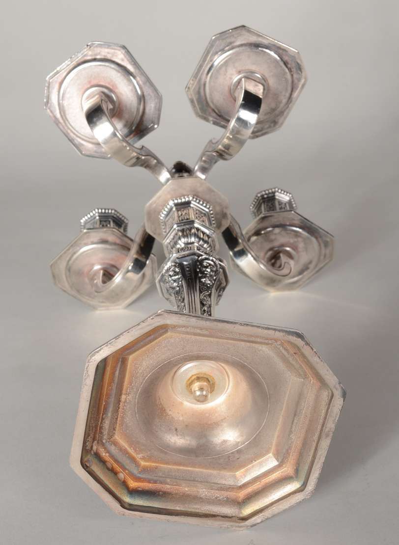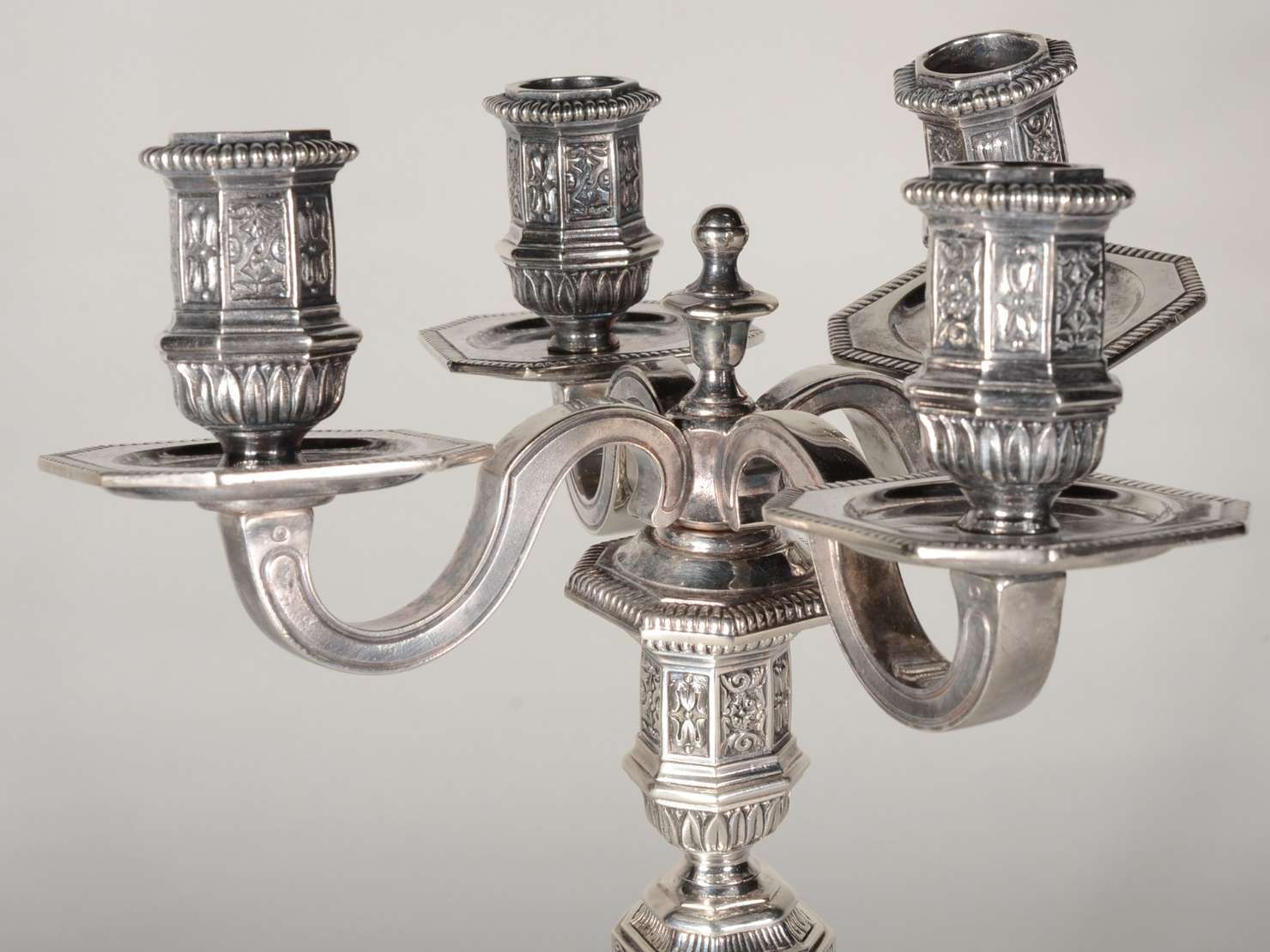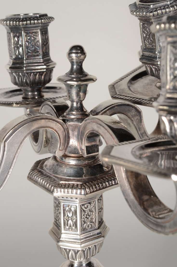 Candelabro de prata para 5 velas, contraste 833 mls. Peso da prata: 1920 g. (Por motivos de segurança a peça não se e...