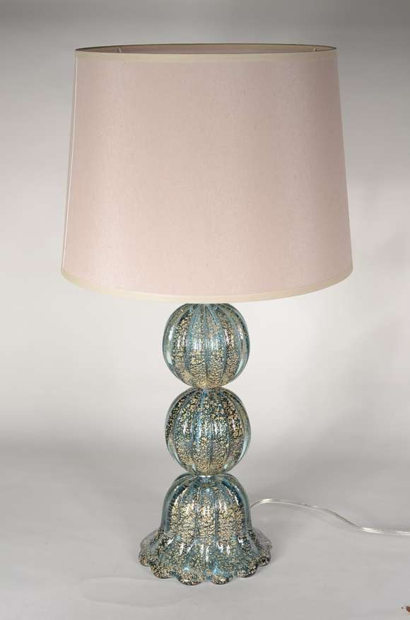 Luminária/abatjour de vidro decorativo, trabalhado em gomos na cor azul com pó de ouro. Acompanha cúpula.