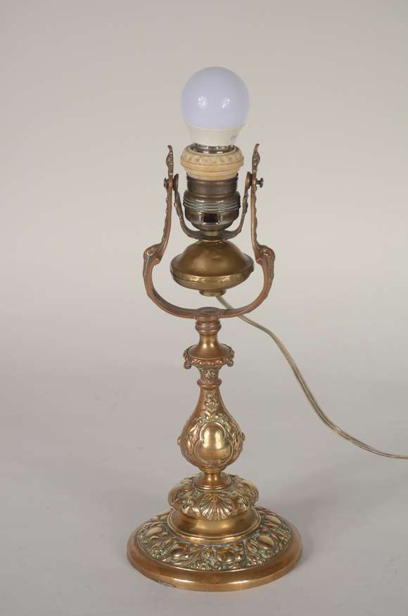 Lustre de metal dourado para 10 luzes, mangas de pergaminho (desgastes).